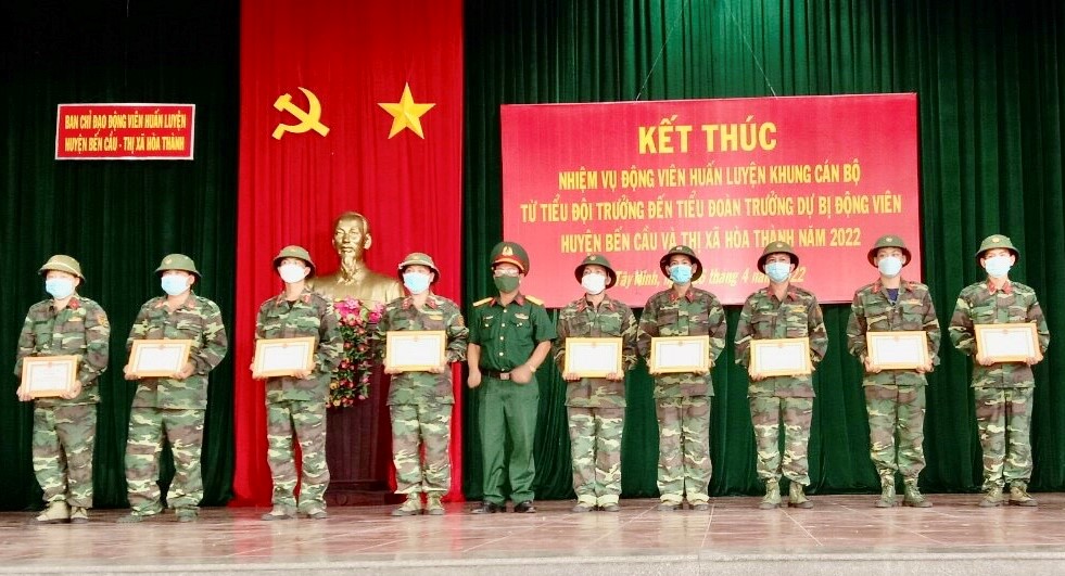 Thị xã Hòa Thành, tỉnh Tây Ninh kết thúc động viên huấn luyện khung cán bộ Tiểu đoàn dự bị động viên năm 2022
