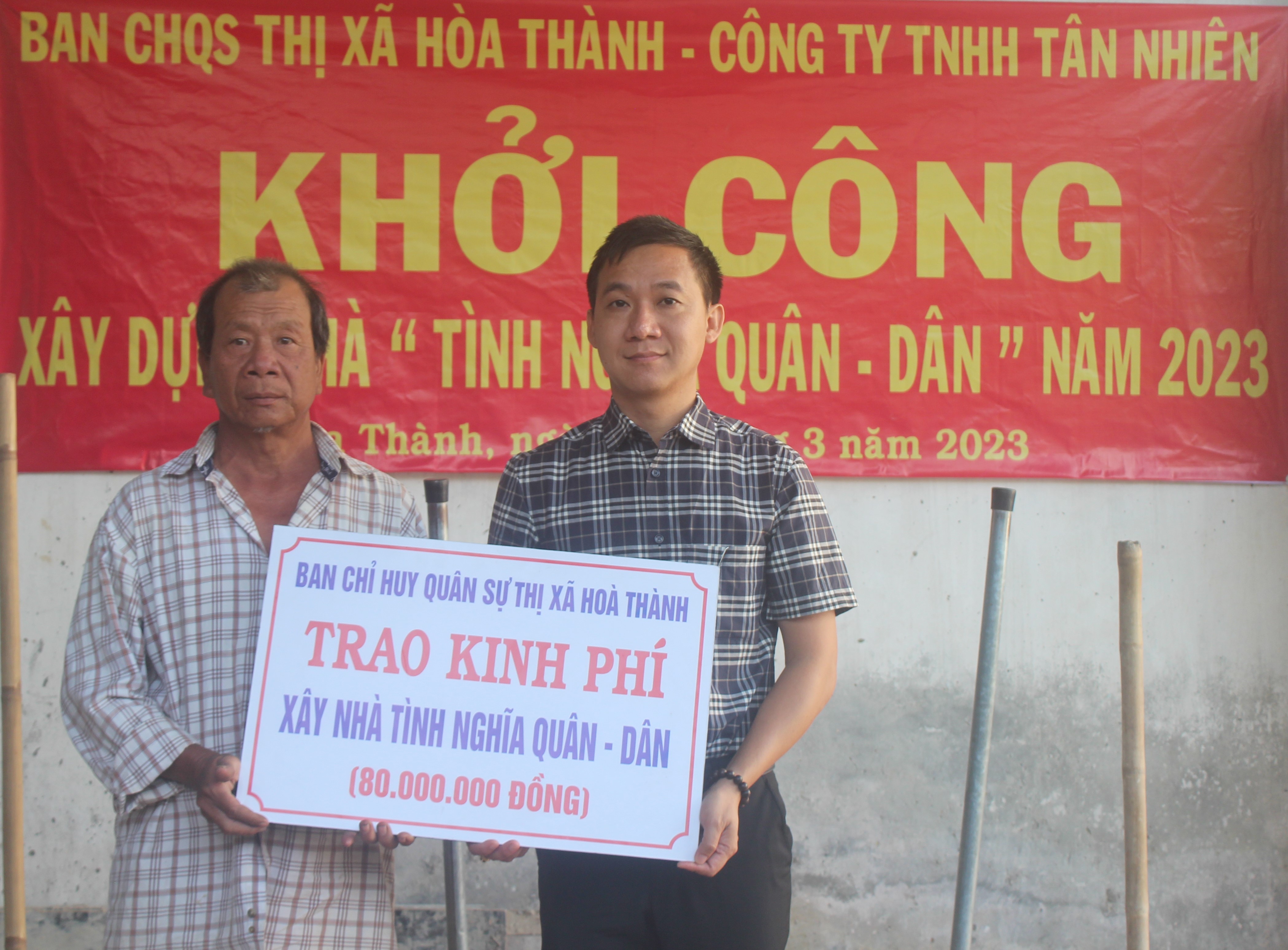 Được biết, gia đình đồng chí Trương Minh Tài có hoàn cảnh đặt biệt khó khăn, gia đình đang sống trong căn nhà xuống cấp trầm trọng. Biết được hoàn cảnh khó khăn của gia đình, Ban CHQS thị xã Hòa Thành vận động Công ty TNHH Tân Nhiên (xã Trường Đông, thị xã Hòa Thành) hỗ trợ 80 triệu đồng xây tặng nhà cho gia đình. Đây là căn nhà thứ hai trong năm 2023 được Ban CHQS thị xã Hòa Thành vận động xây tặng cán bộ, chiến sĩ, dân quân thường trực và đồng bào tôn giáo, dân tộc trên địa bàn thị xã.