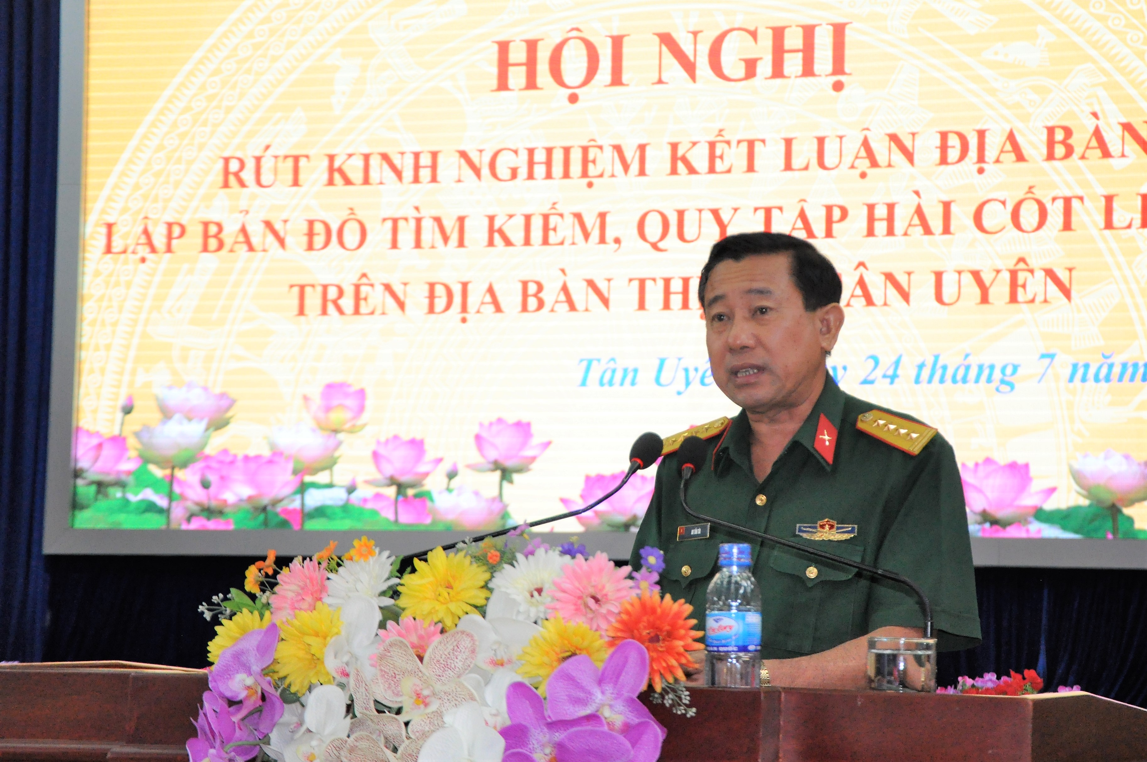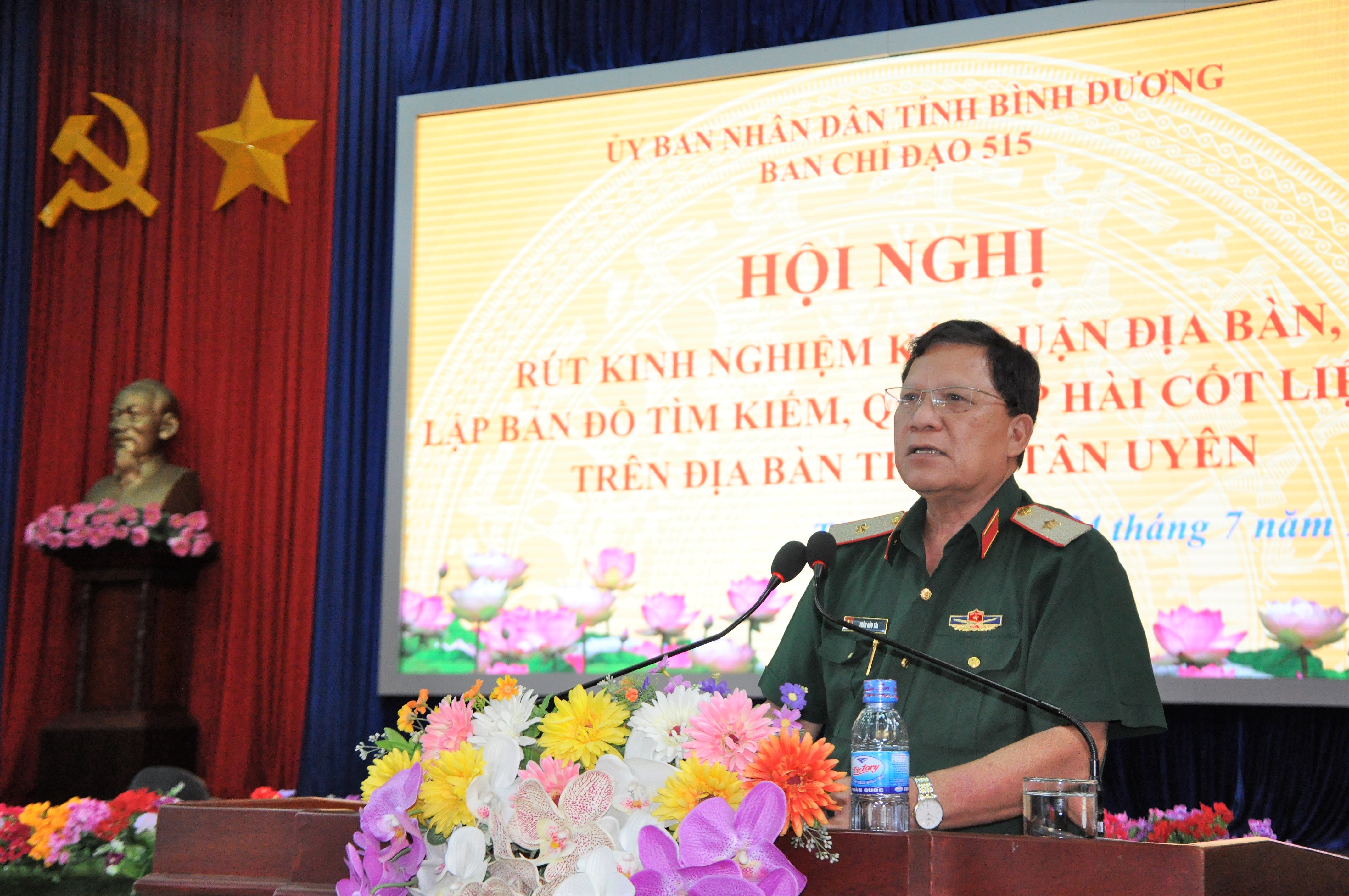 Phát biểu chỉ đạo tại hội nghị, Thiếu tướng Trần Hữu Tài, Phó Chủ nhiệm Chính trị Quân khu 7 đề nghị Ban Chỉ đạo 515 tỉnh Bình Dương; Ban Chỉ đạo 24 các huyện, thị xã tiếp tục quán triệt, triển khai hiệu quả các nội dung đề án 1237, các văn bản có liên quan về công tác lập bản đồ tìm kiếm, quy tập hài cốt liệt sĩ. Tăng cường sự lãnh đạo, chỉ đạo, phối hợp với các ban ngành, đoàn thể đề ra các giải pháp đúng đắn, phù hợp nhằm đẩy nhanh tiến độ; phát huy sức mạnh cả hệ thống chính trị và xác định đây là nhiệm vụ chính trị trọng tâm, thường xuyên, lâu dài của các cấp, các ngành và toàn xã hội, thể hiện tình cảm, tính nhân văn sâu sắc. Ban Chỉ đạo 24 các huyện, thị xã tiếp tục cập nhật, rà soát, hoàn chỉnh hồ sơ, danh sách liệt sĩ; kết luận địa bàn và triển khai kế hoạch thu thập, bổ sung thông tin, tiếp tục thực hiện công tác tìm kiếm, xác định hài cốt liệt sĩ còn thiếu thông tin trong thời gian tới.