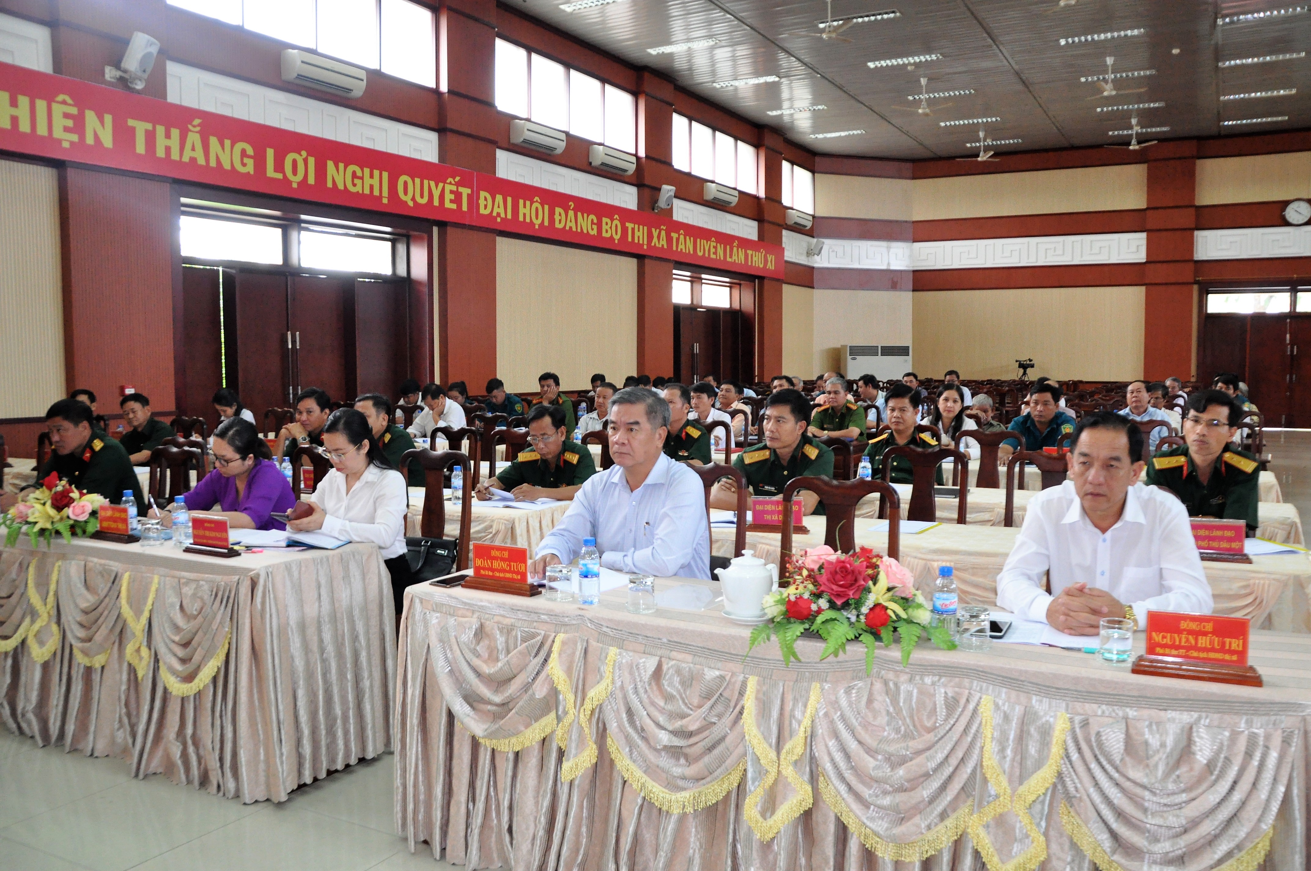 Đại tá Ao Tấn Tài, Chính ủy Bộ CHQS tỉnh Bình Dương chủ trì hội nghị.