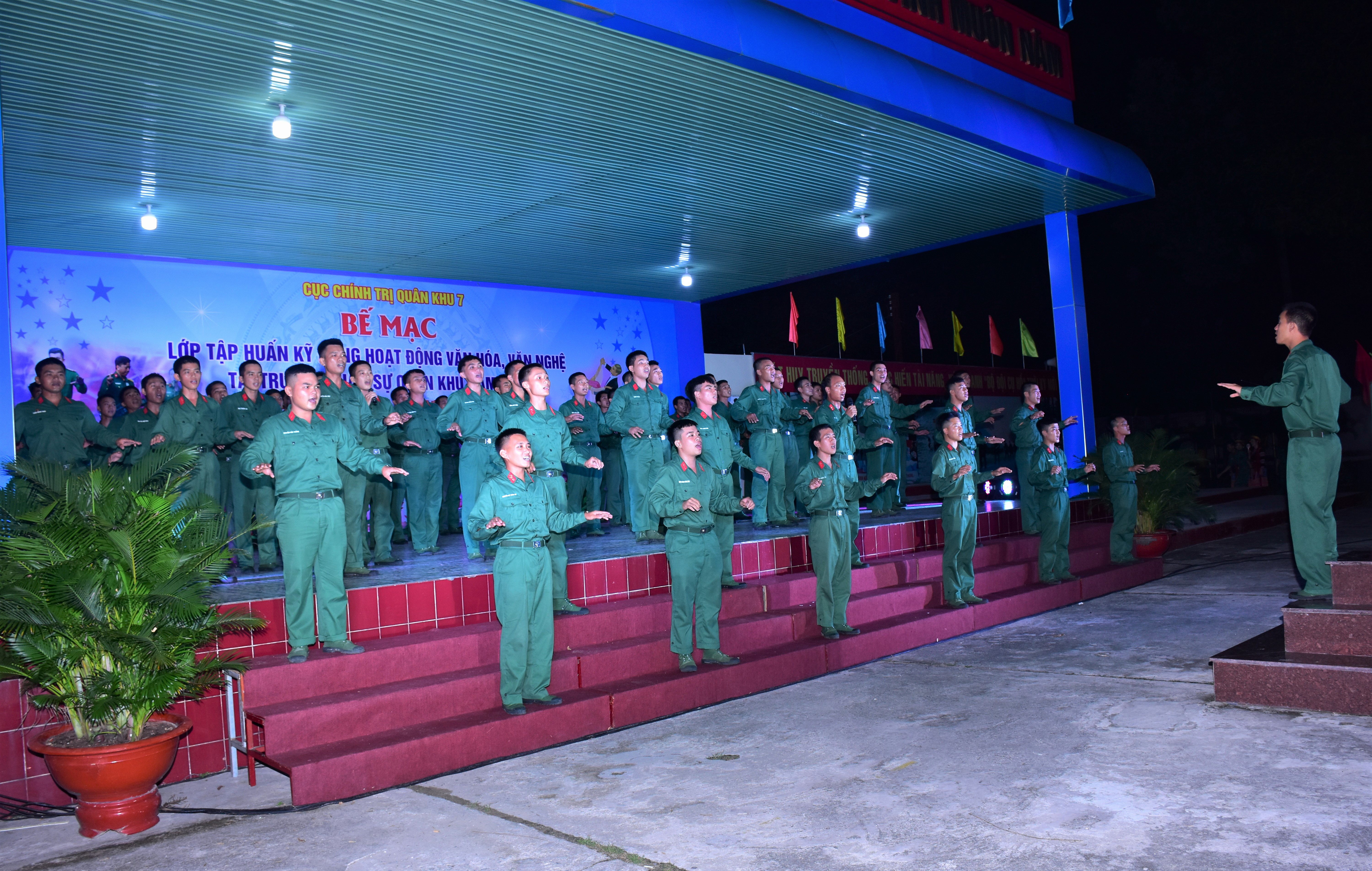 (QK7 Online) - Văn hóa văn nghệ là một phần không thể thiếu trong đời sống bộ đội. Các đồng chí cán bộ khung và tiểu đội trưởng có vai trò rất quan trọng, tạo nên không khí vui tươi, phấn khởi trong huấn luyện, học tập, công tác và trong giờ nghỉ, ngày nghỉ. Xác định được sự cần thiết đó, Cục Chính trị Quân khu tổ chức đợt tập huấn kỹ năng hoạt động văn hóa, văn nghệ nhằm nâng cao đời sống văn hóa tinh thần trong đơn vị.