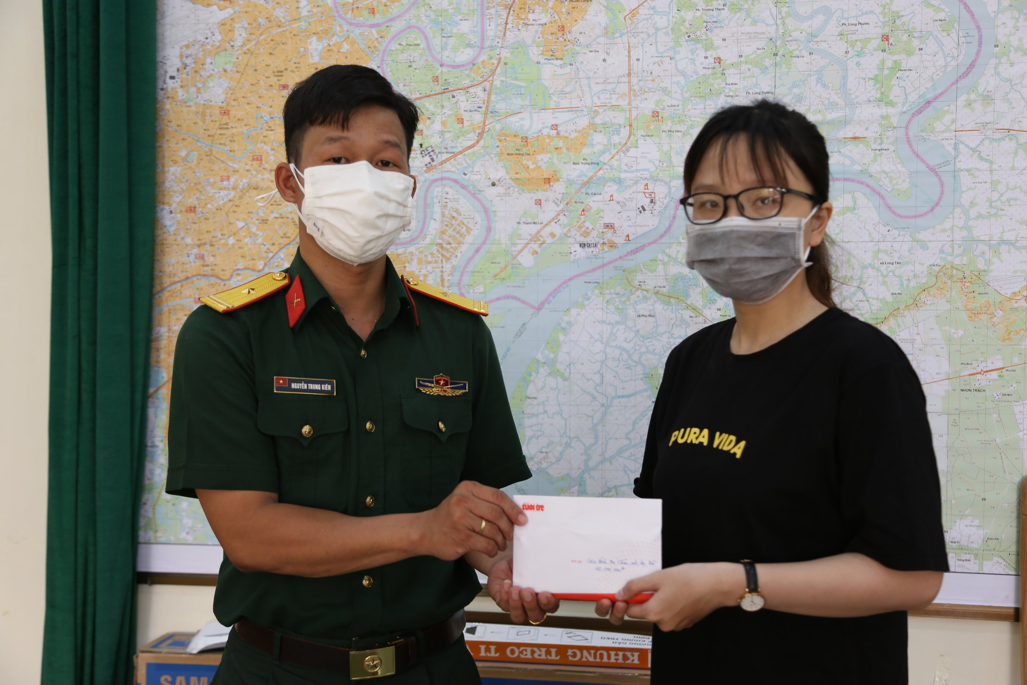 Thiếu tá Nguyễn Trung Kiên tiếp nhận tấm lòng nhà hảo tâm gửi tới bé Châu và các anh chị của bé thông qua báo Tuổi Trẻ