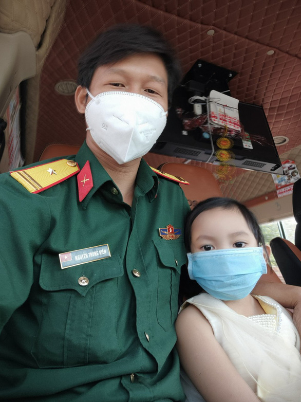 Thiếu tá Nguyễn Trung Kiên và bé Bảo Châu trên đường về với người thân ở thành phố Vũng Tàu