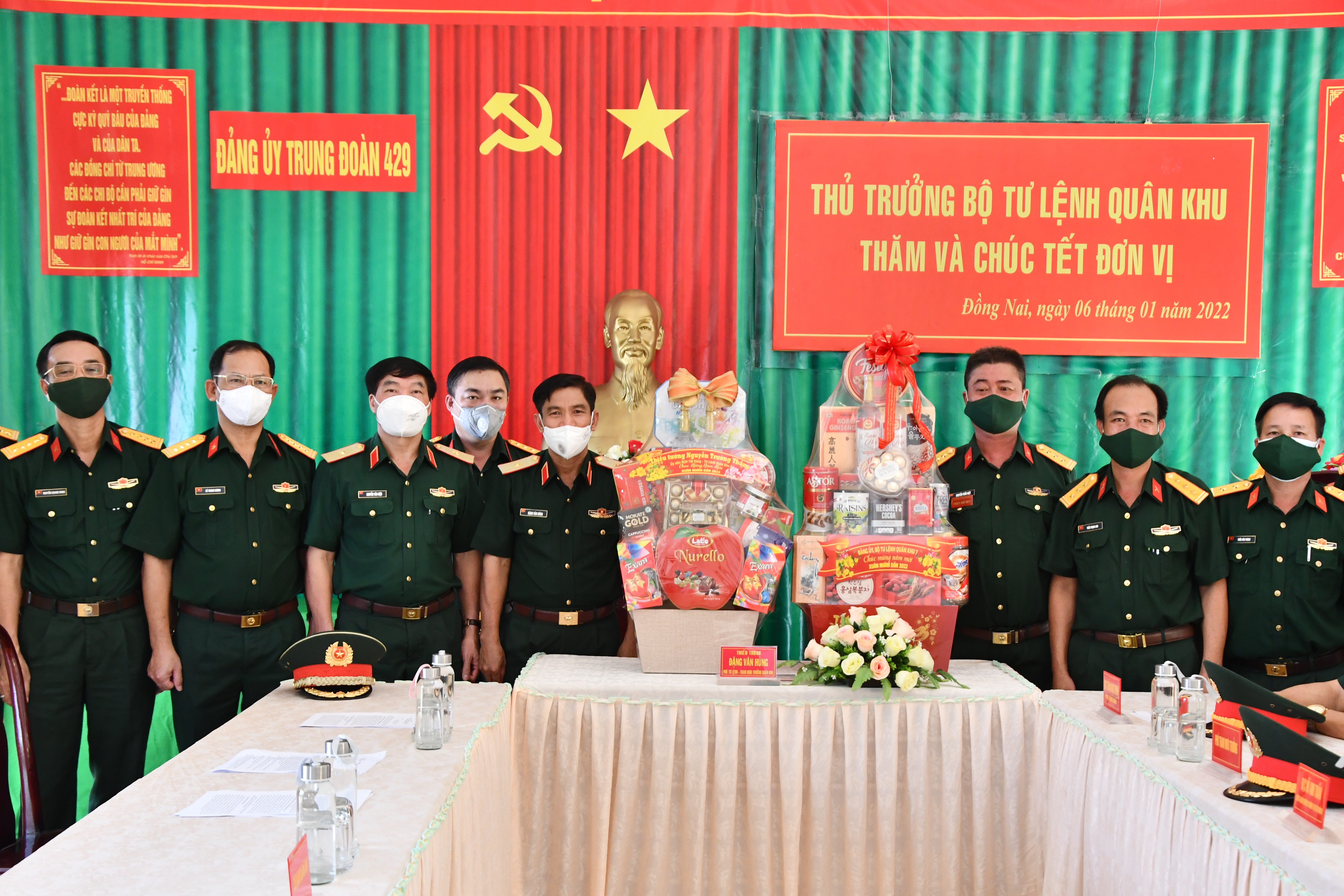 Thiếu tướng Đặng Văn Hùng và đoàn công tác Quân khu tặng quà chúc Tết cán bộ, chiến sĩ Trung đoàn 429.
