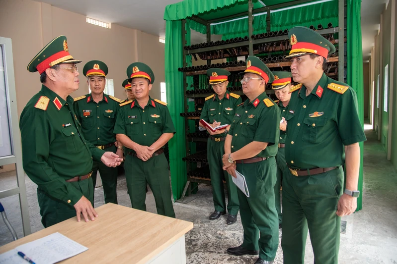 Thiếu tướng Đặng Văn Lẫm kiểm tra kho vũ khí.