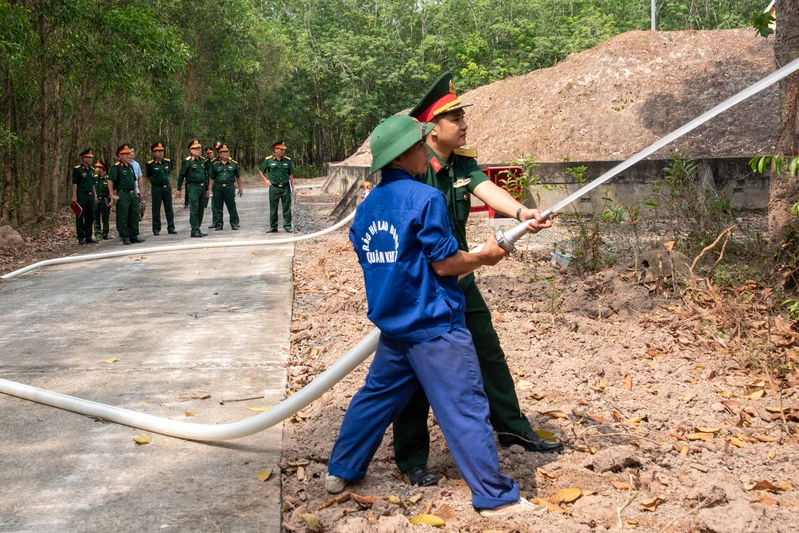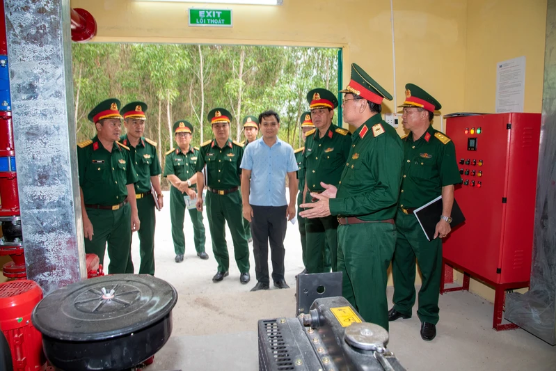 Đoàn công tác kiểm tra trạm bơm phòng cháy chữa cháy được xây dựng mới.