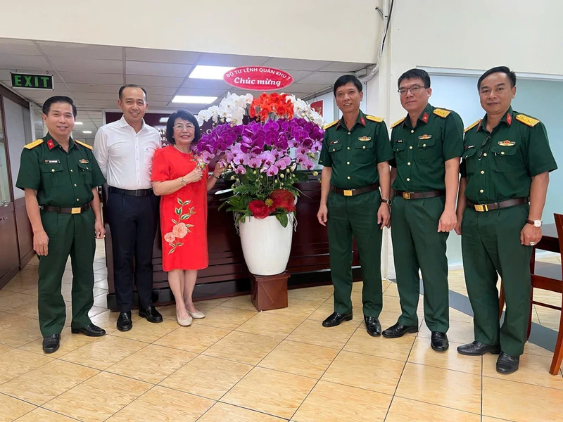 (QK7 Online) - Nhân dịp kỷ niệm 21 năm ngày Doanh nhân Việt Nam (13/10/2004 - 13/10/2025), sáng ngày 13/10, thừa ủy quyền của Thủ trưởng Bộ Tư lệnh Quân khu, Đại tá Trần Văn Long, Phó Chính ủy Cục Hậu cần – Kỹ thuật Quân khu cùng Thủ trưởng các cơ quan Quân khu đã đến tặng hoa, chúc mừng Tập đoàn Công nghiệp - Viễn thông Quân đội (Viettel) và Ngân hàng Thương mại Cổ phần Quân đội (MB) chi nhánh Thành phố Hồ Chí Minh.