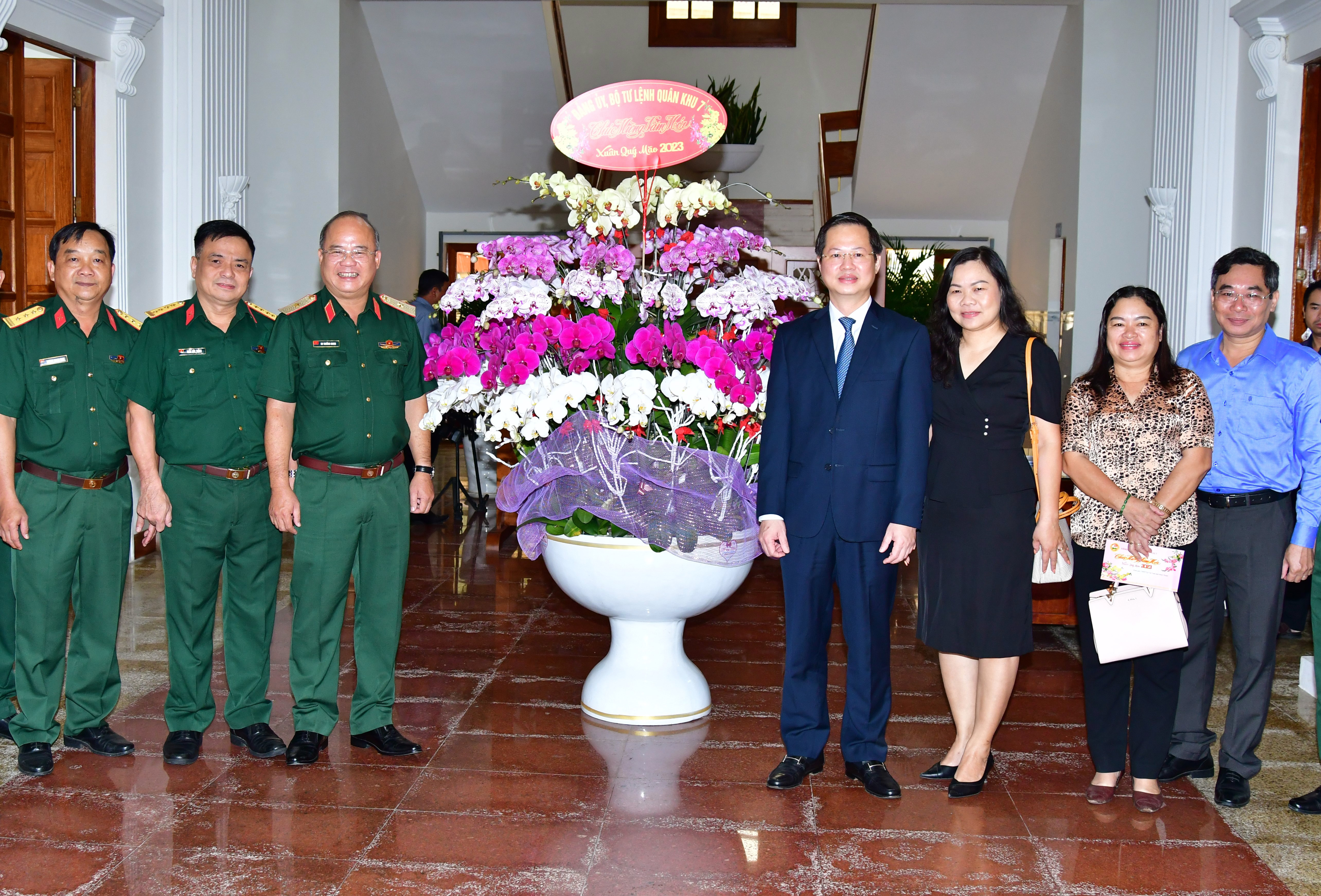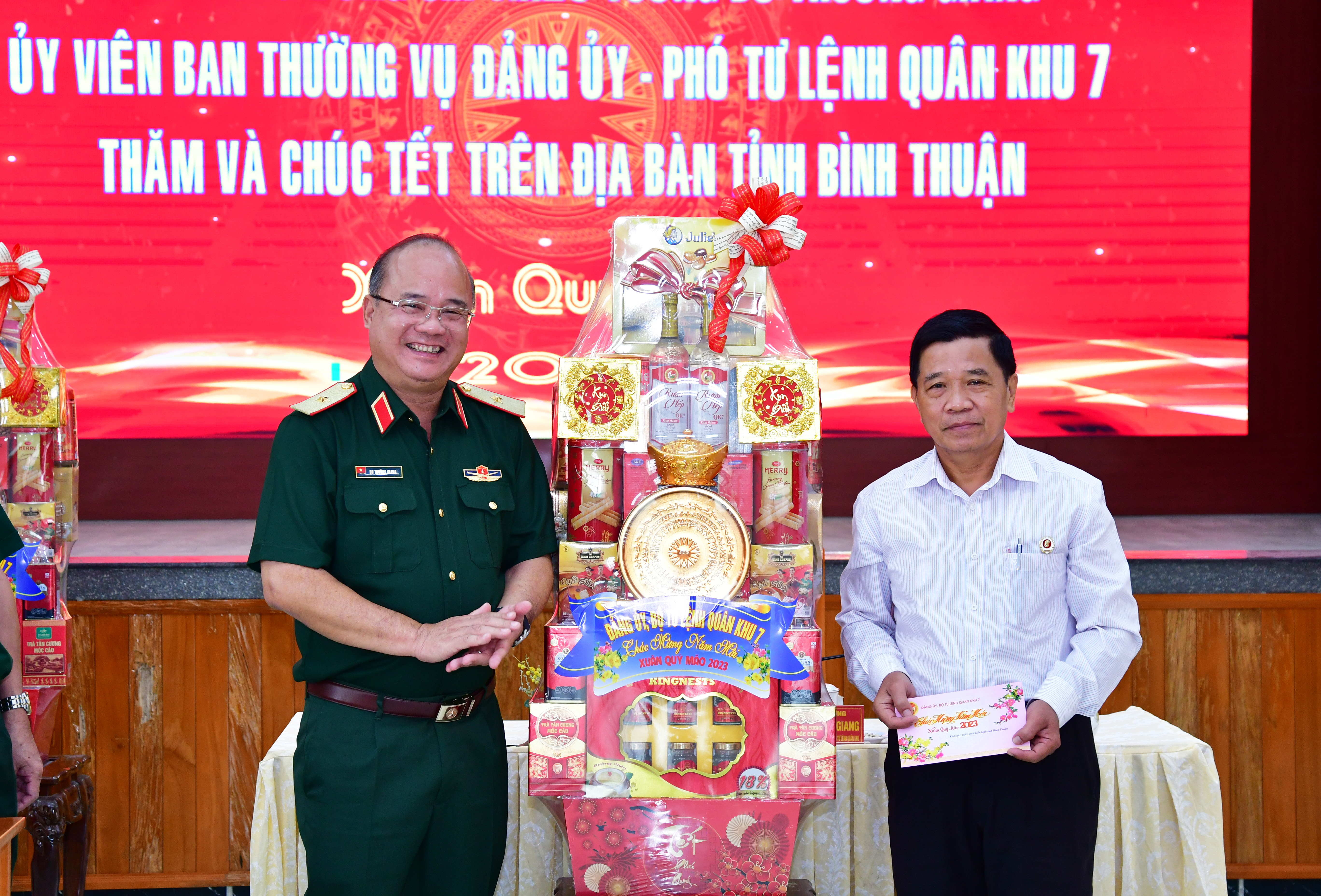Đồng chí Chủ tịch UBND tỉnh Bình Thuận gửi lời chúc mừng năm mới đến các đồng chí trong Thường vụ Đảng ủy, Bộ Tư lệnh Quân khu và chúc cán bộ, chiến sĩ LLVT Quân khu luôn mạnh khoẻ, hạnh phúc, hoàn thành thắng lợi mọi nhiệm vụ được giao. Đồng thời khẳng định, Đảng bộ, chính quyền, Nhân dân và LLVT tỉnh Bình Thuận sẽ luôn đoàn kết, thống nhất, quyết tâm xây dựng tỉnh Bình Thuận ngày càng giàu mạnh.