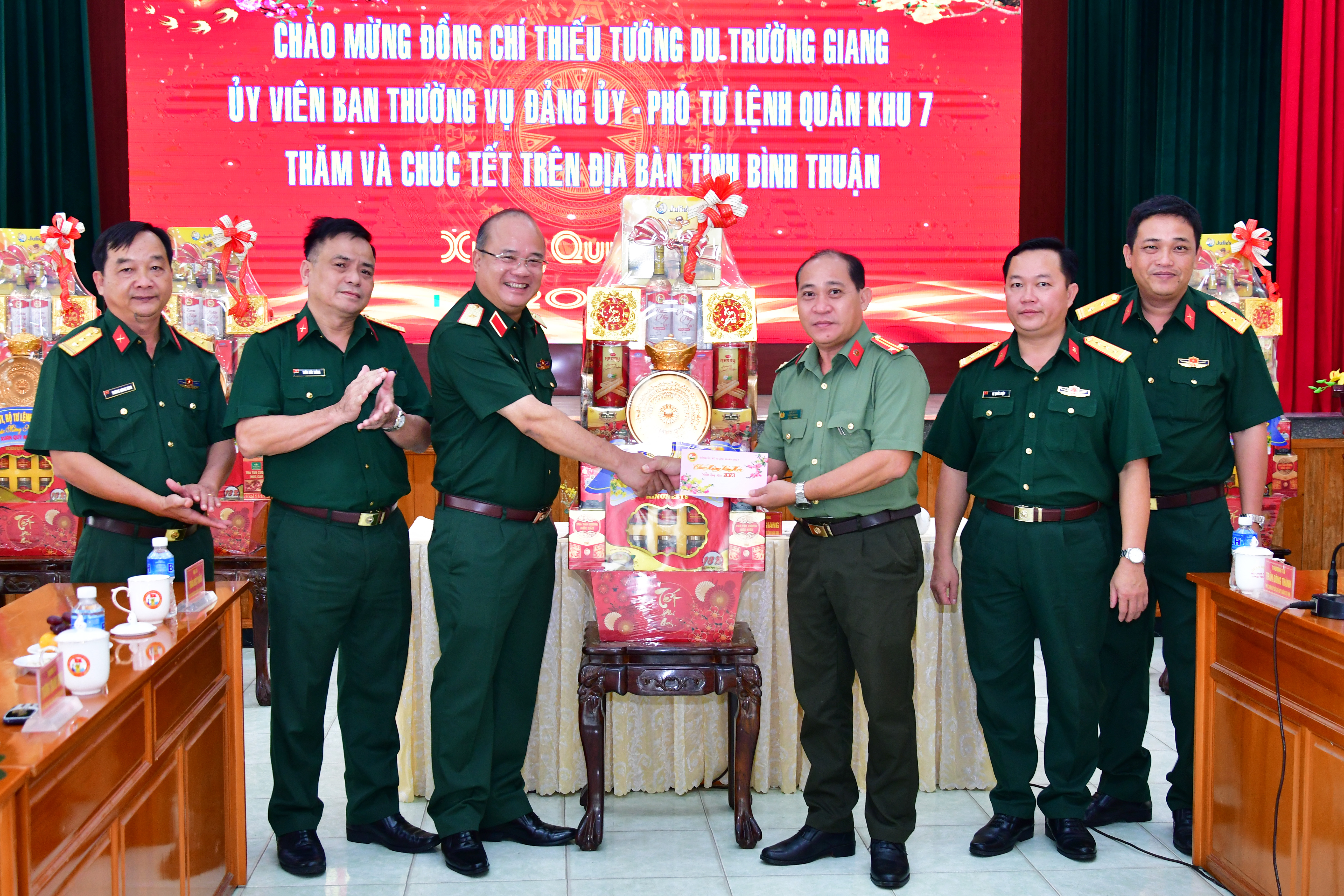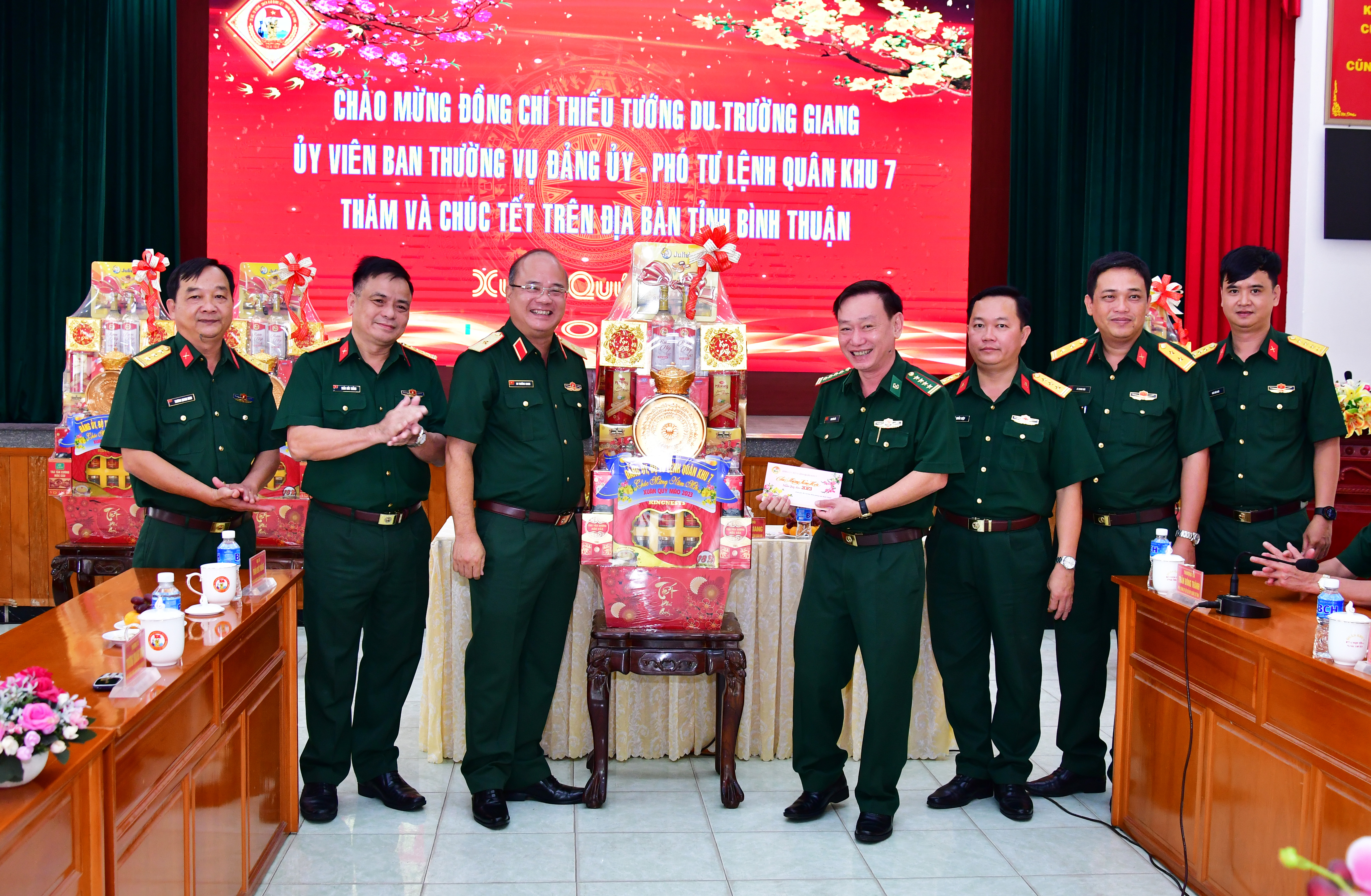 Đến thăm, chúc Tết lãnh đạo Tỉnh ủy, UBND tỉnh Bình Thuận, Thiếu tướng Du Trường Giang, Phó Tư lệnh Quân khu bày tỏ vui mừng trước những thành tích mà Đảng bộ, chính quyền và Nhân dân tỉnh Bình Thuận đã đạt được trong năm 2022, góp phần làm cho đời sống Nhân dân ngày càng được nâng cao, các chỉ tiêu phát triển kinh tế - xã hội đều đạt và vượt yêu cầu đề ra; tình hình an ninh chính trị, trật tự an toàn xã hội trên địa bàn tiếp tục được giữ vững, ổn định.