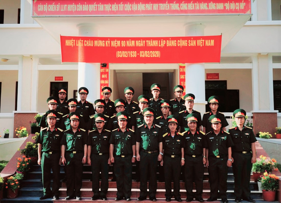 Thiếu tướng Du Trường Giang với cán bộ Ban Chỉ huy Quân sự huyện Côn Đảo.
