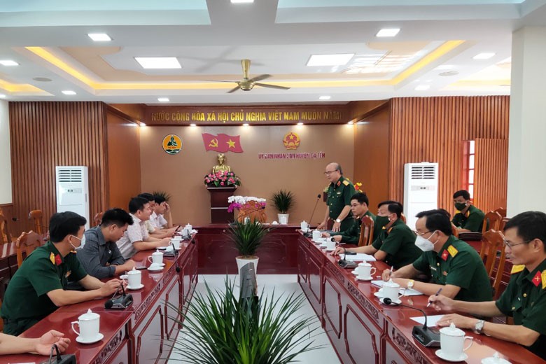 Cùng ngày, đoàn công tác Bộ Tư lệnh Quân khu làm việc với lãnh đạo UBND huyện Đạ Tẻh về công tác tuyển quân. Tại buổi làm việc, Chủ tịch UBND huyện Đạ Tẻh Tống Giang Nam biểu dương cán bộ, chiến sĩ LLVT huyện trong thời gian qua đã đồng hành cùng với chính quyền địa phương làm tốt công tác phòng, chống dịch Covid – 19 trên địa bàn. Đối với vấn đề tuyển quân, đây là một trong những nhiệm vụ trọng tâm trong công tác quốc phòng - quân sự của địa phương, UBND huyện Đạ Tẻh yêu cầu Ban CHQS huyện tiếp tục tham mưu cho cấp ủy, chính quyền làm tốt các quy trình công tác tuyển quân và lễ giao nhận quân năm 2022 diễn ra an toàn, đúng quy trình, đảm bảo về số lượng và chất lượng được giao.