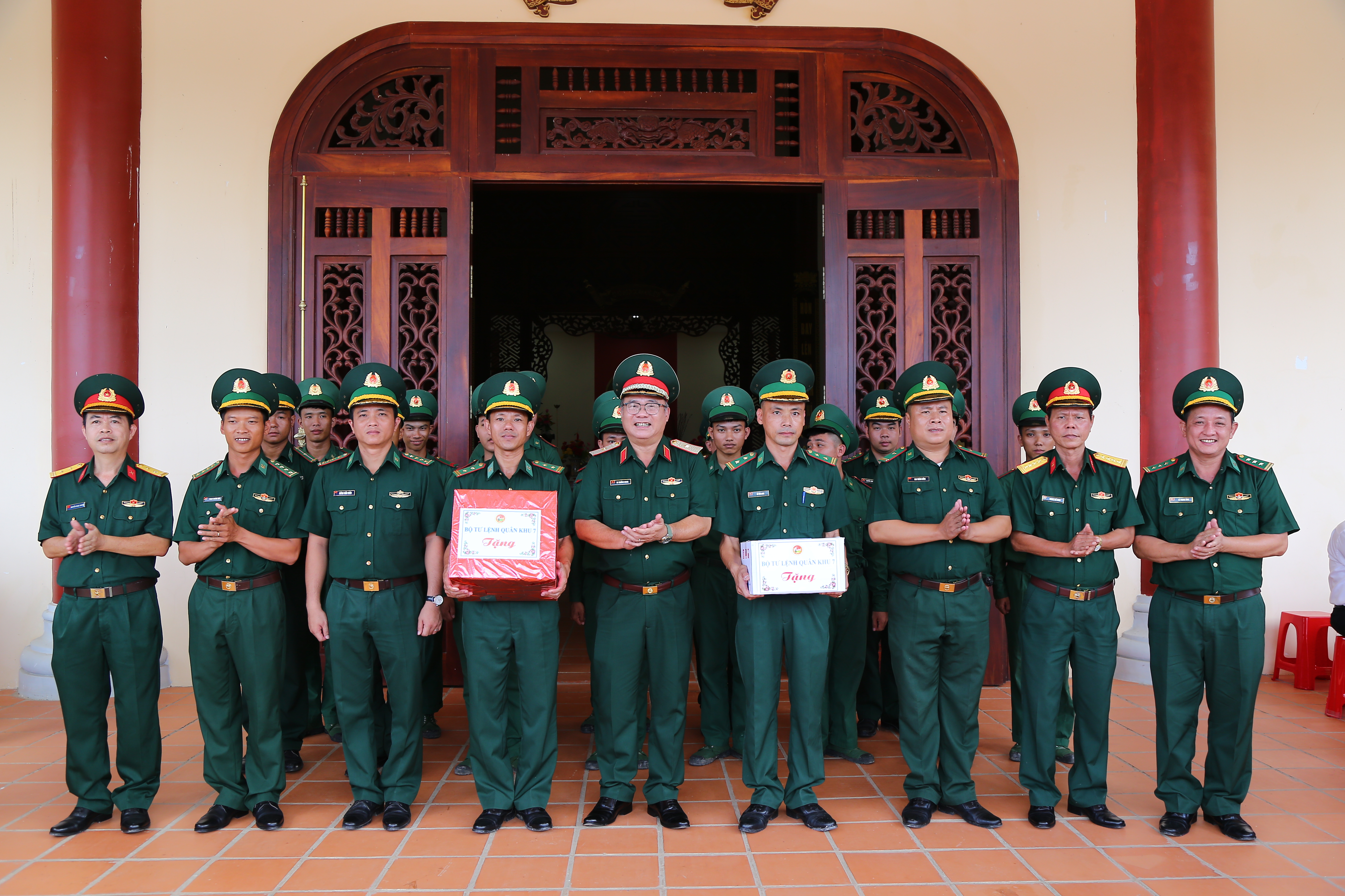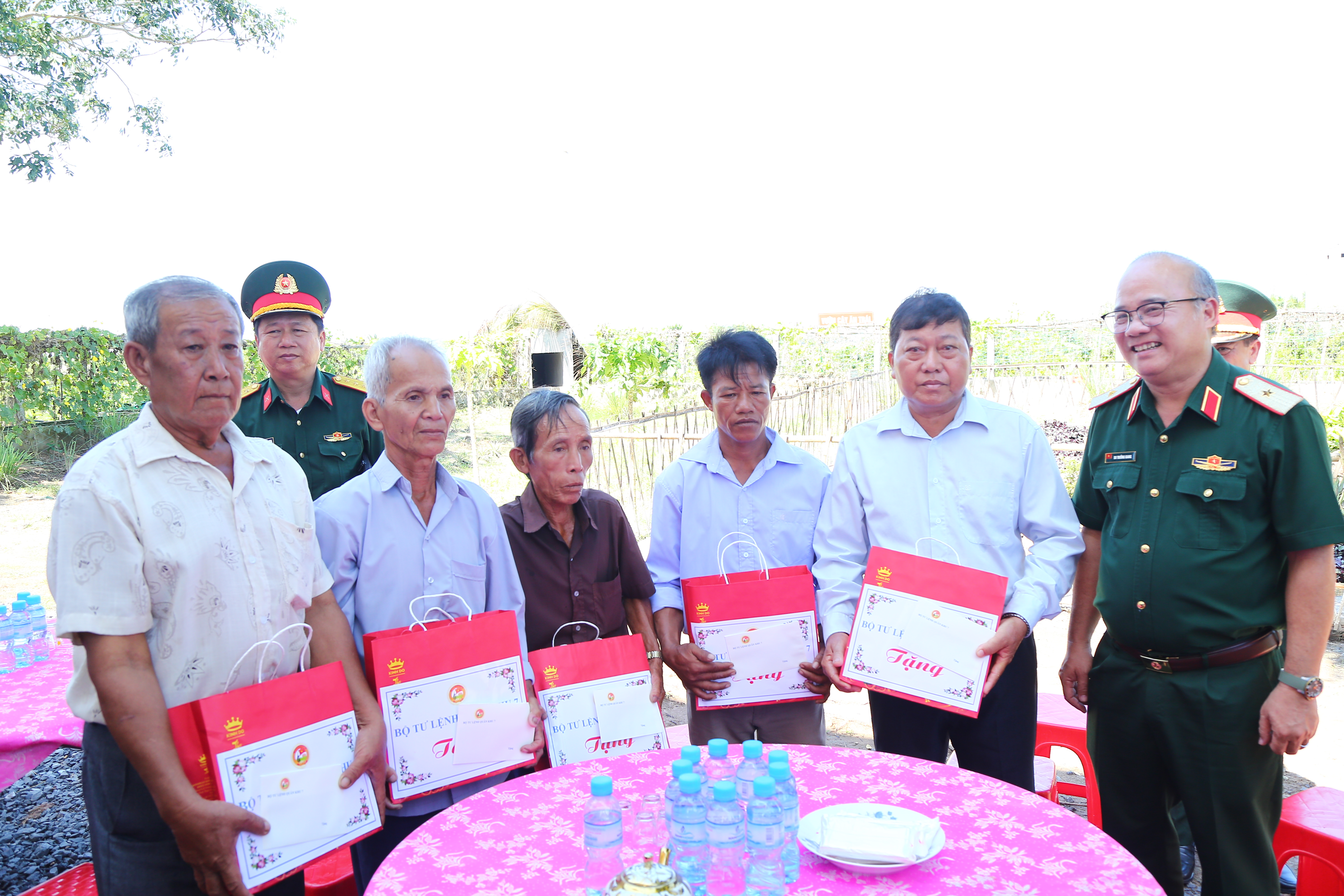 Thủ trưởng Bộ Tư lệnh Quân khu tặng quà động viên lực lượng dân quân Chốt dân quân Bình Tân, Ban CHQS Thị xã Kiến Tường.