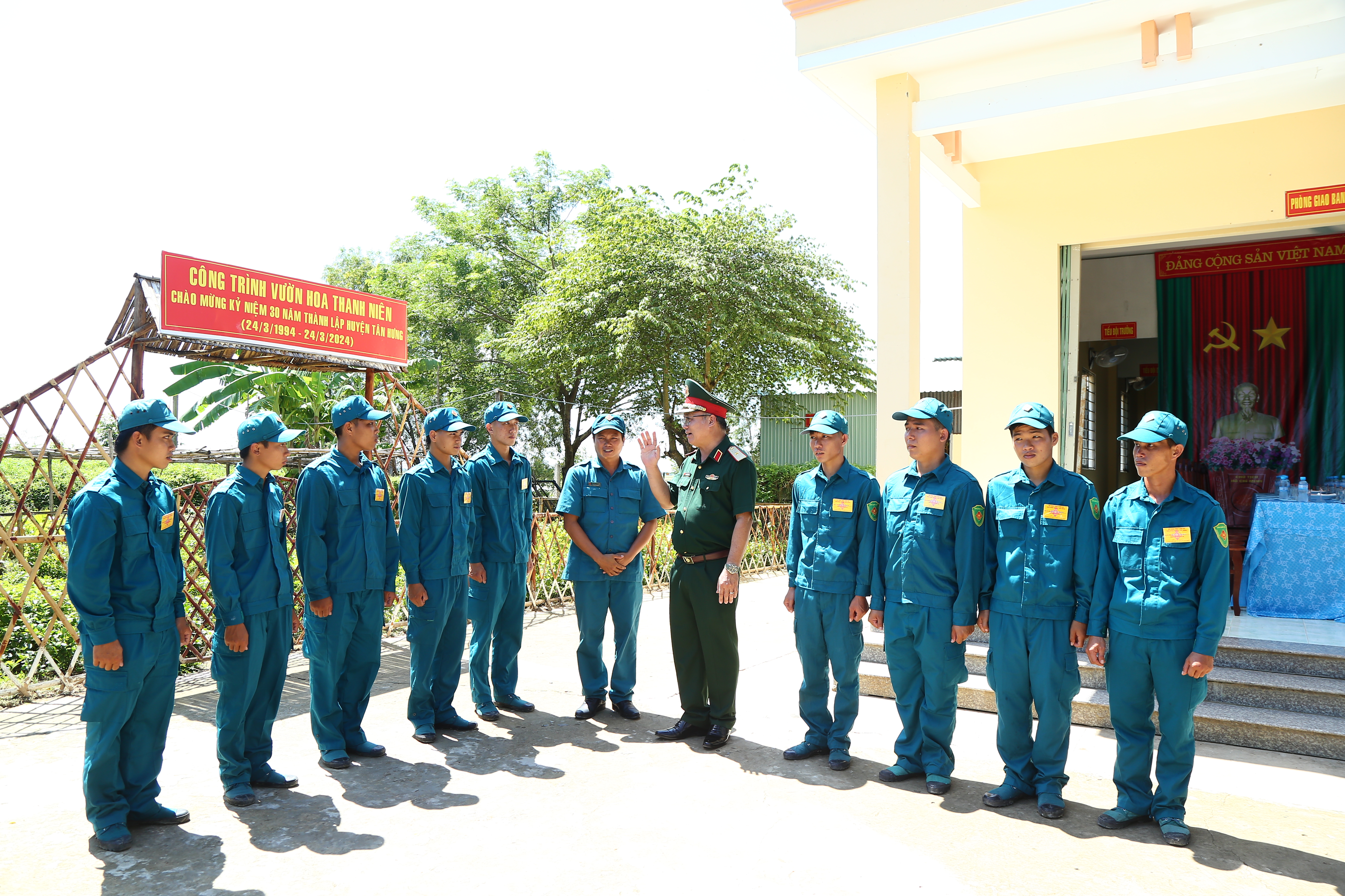 Đến thăm Chốt dân quân Hưng Hà, huyện Tân Hưng, đồng chí Phó Tư lệnh Quân khu đề nghị cán bộ, chiến sĩ dân quân luôn đoàn kết, khắc phục mọi khó khăn, hoàn thành xuất sắc mọi nhiệm vụ trong thời gian tới.