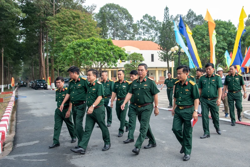 Đoàn công tác kiểm tra Hội trường tổ chức Lễ công bố quyết định thành lập và trao Quân kỳ Quyết thắng cho Trường Thiếu sinh quân miền Nam.