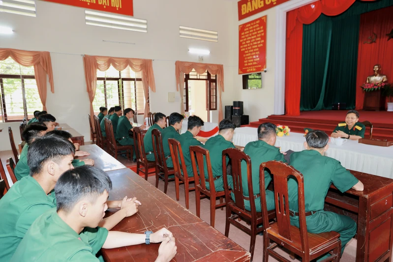 Đại tá Nguyễn Văn Lộc, Phó Chủ nhiệm Chính trị Quân khu kiểm tra nhận thức cán bộ, chiến sĩ Trung đoàn 5 về nhiệm vụ SSCĐ.
