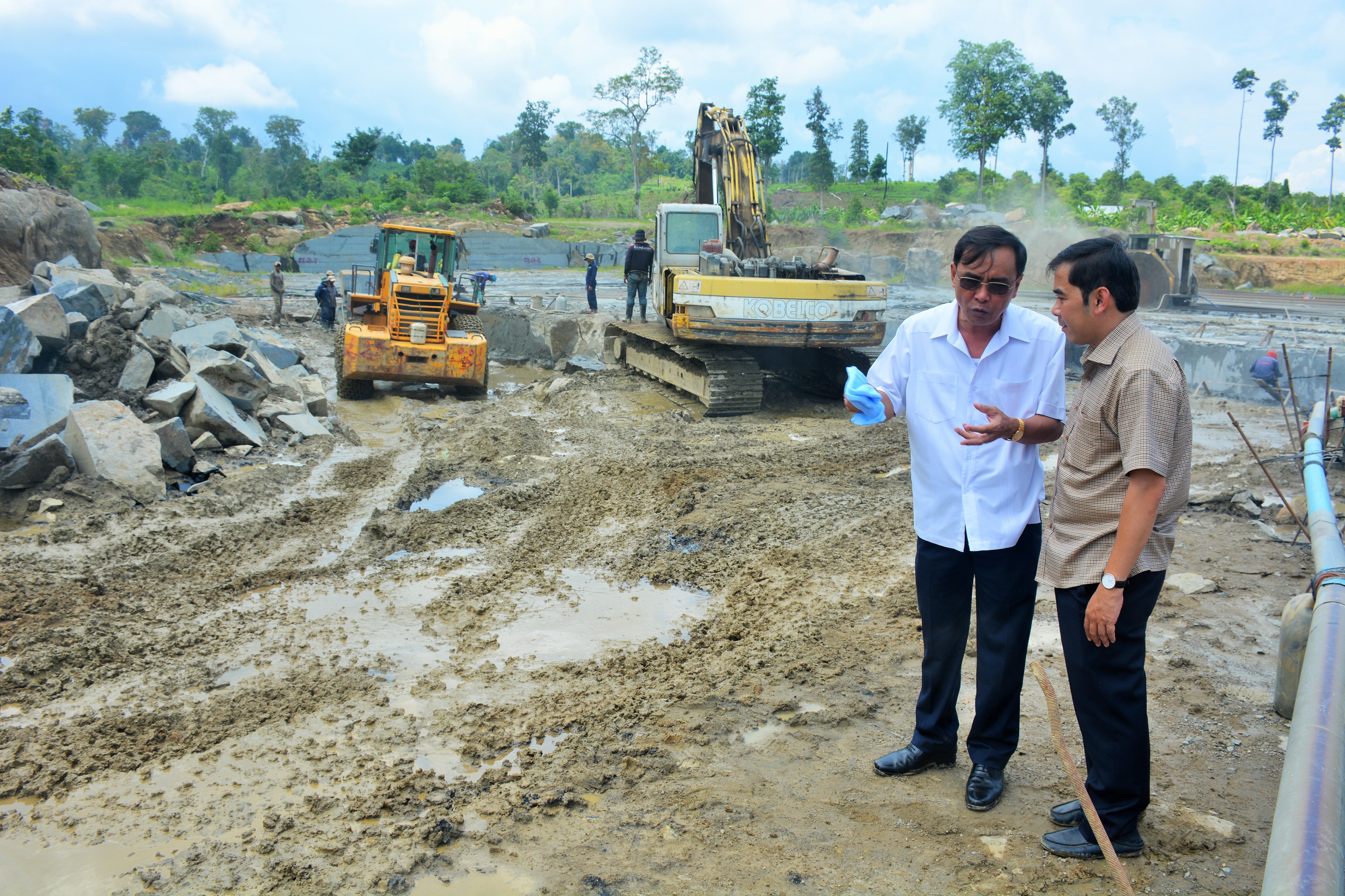 Thiếu tướng Nguyễn Minh Hoàng cùng Thiếu tá Phạm Thanh Hòa tham quan mỏ đá
