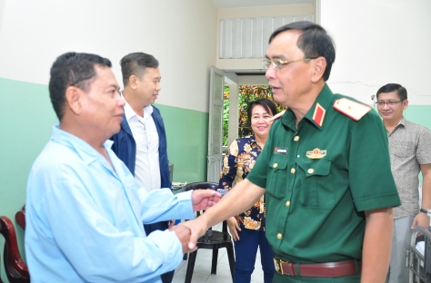 (QK7 Online) – Chiều 24/6, đoàn cán bộ Quân khu 7 do Thiếu tướng Nguyễn Minh Hoàng, Phó Chính ủy Quân khu làm trưởng đoàn đến thăm Trung tướng Som Sun, Phó Tư lệnh Quân khu 4, kiêm Chỉ huy trưởng Tiểu khu Quân sự tỉnh Kampong Thom, Quân đội Hoàng gia Campuchia đang điều trị tại Bệnh viện Quân y 175.