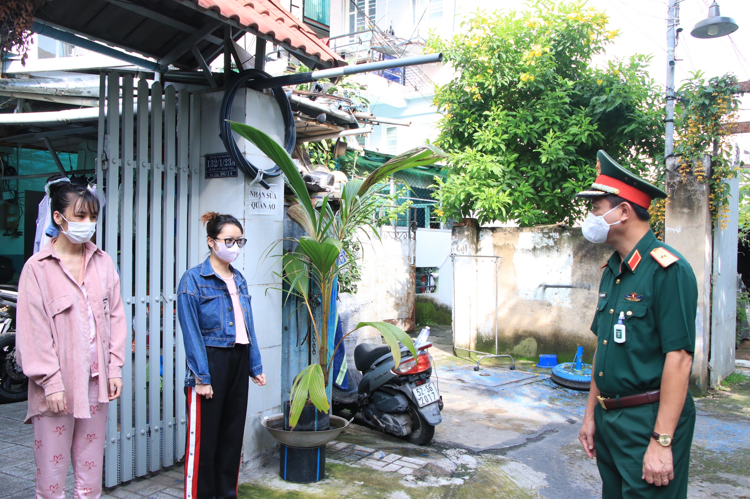 Đồng chí Tư lệnh Quân khu hỏi thăm tình hình đời sống của các sinh viên đang thuê trọ tại phường 4, quận Gò Vấp.