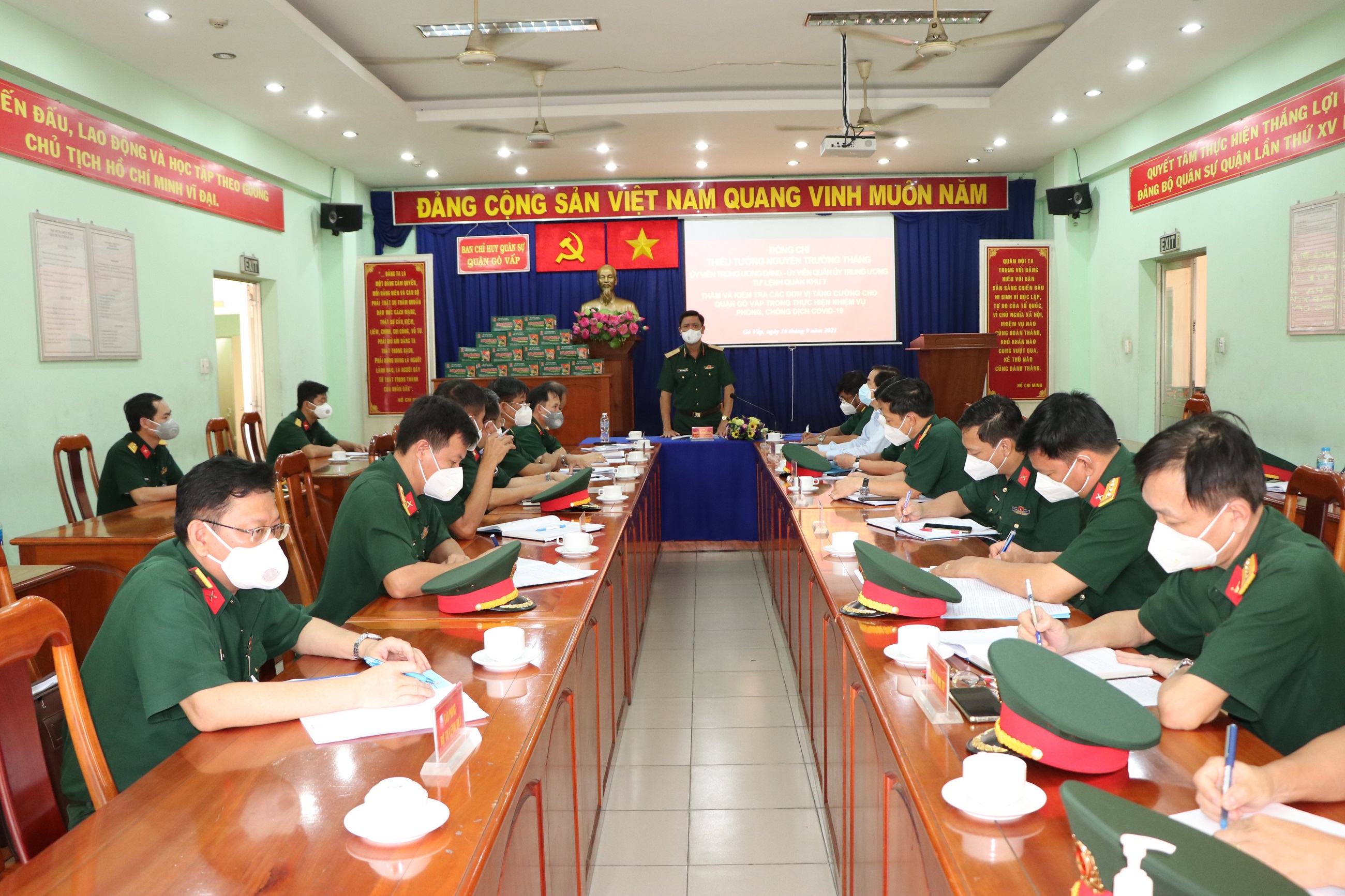 Báo cáo với đồng chí Tư lệnh Quân khu, lãnh đạo quận Gò Vấp cho biết, số ca nhiễm Covid-19 trên địa bàn quận có gần 9.500 ca, đến nay đã khỏi bệnh trên 7.000 ca, qua xét nghiệm đợt 3, Gò Vấp có trên 65% tổ dân phố xanh và cận xanh, vùng đỏ chỉ còn trên 8%. Tỷ lệ tiêm vaccine mũi 1 đạt gần 95% và mũi 2 đạt trên 20%.