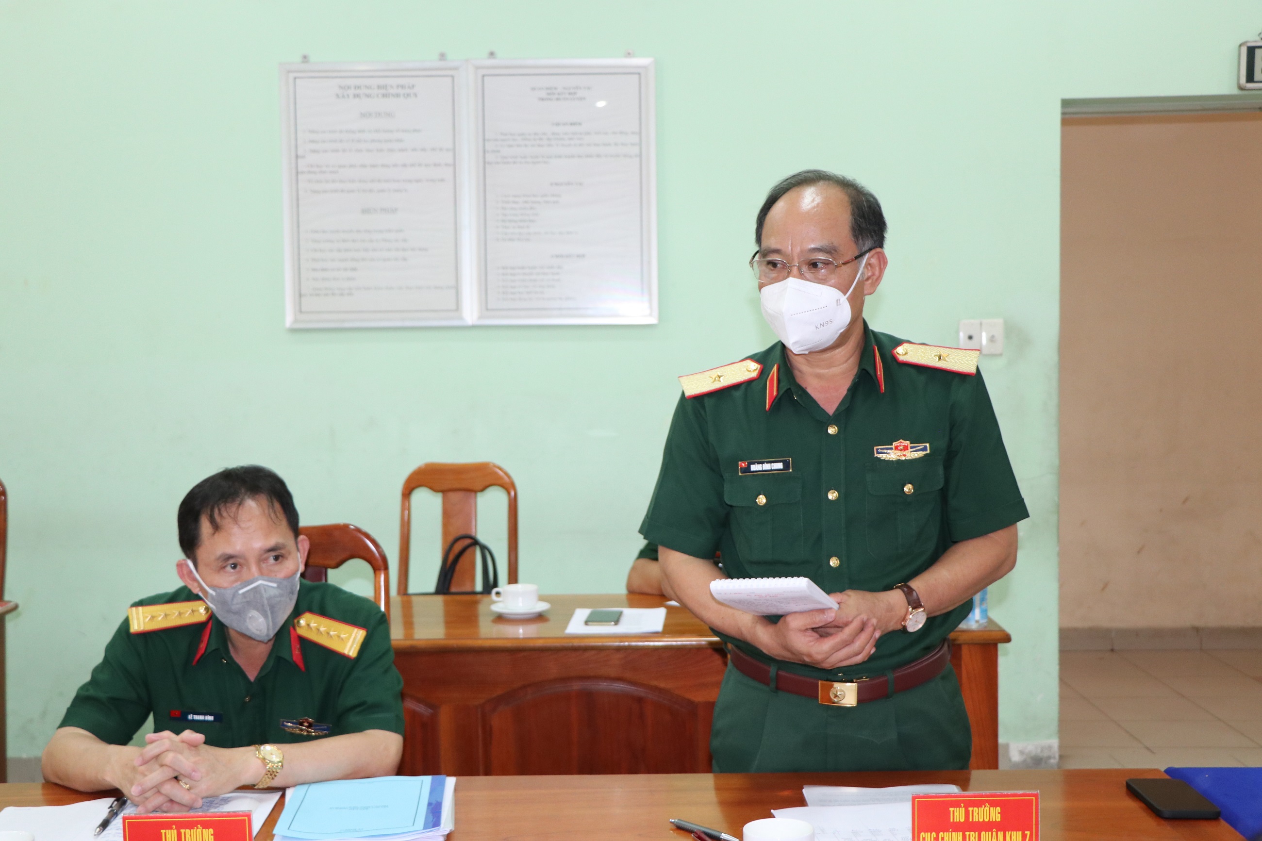 Thiếu tướng Hoàng Đình Chung, Chủ nhiệm Chính trị Quân khu phát biểu tại buổi làm việc.