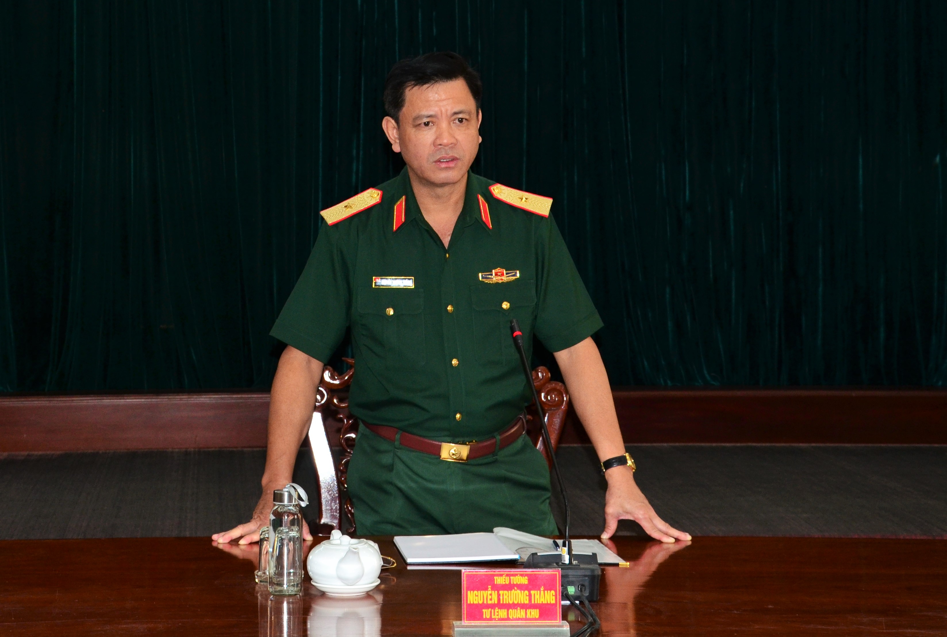 Thiếu tướng Nguyễn Trường Thắng, Tư lệnh Quân khu phát biểu tại buổi làm việc.