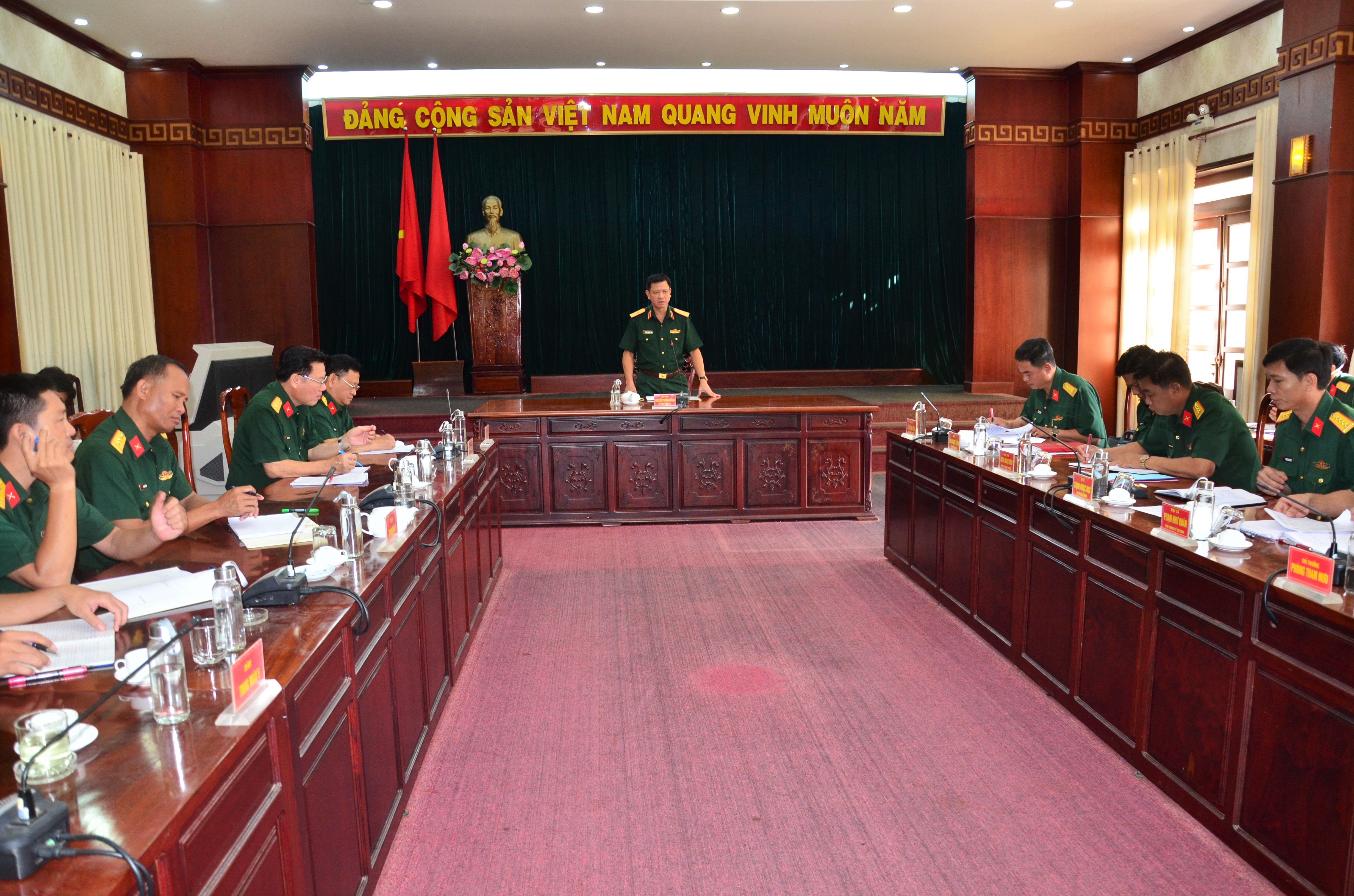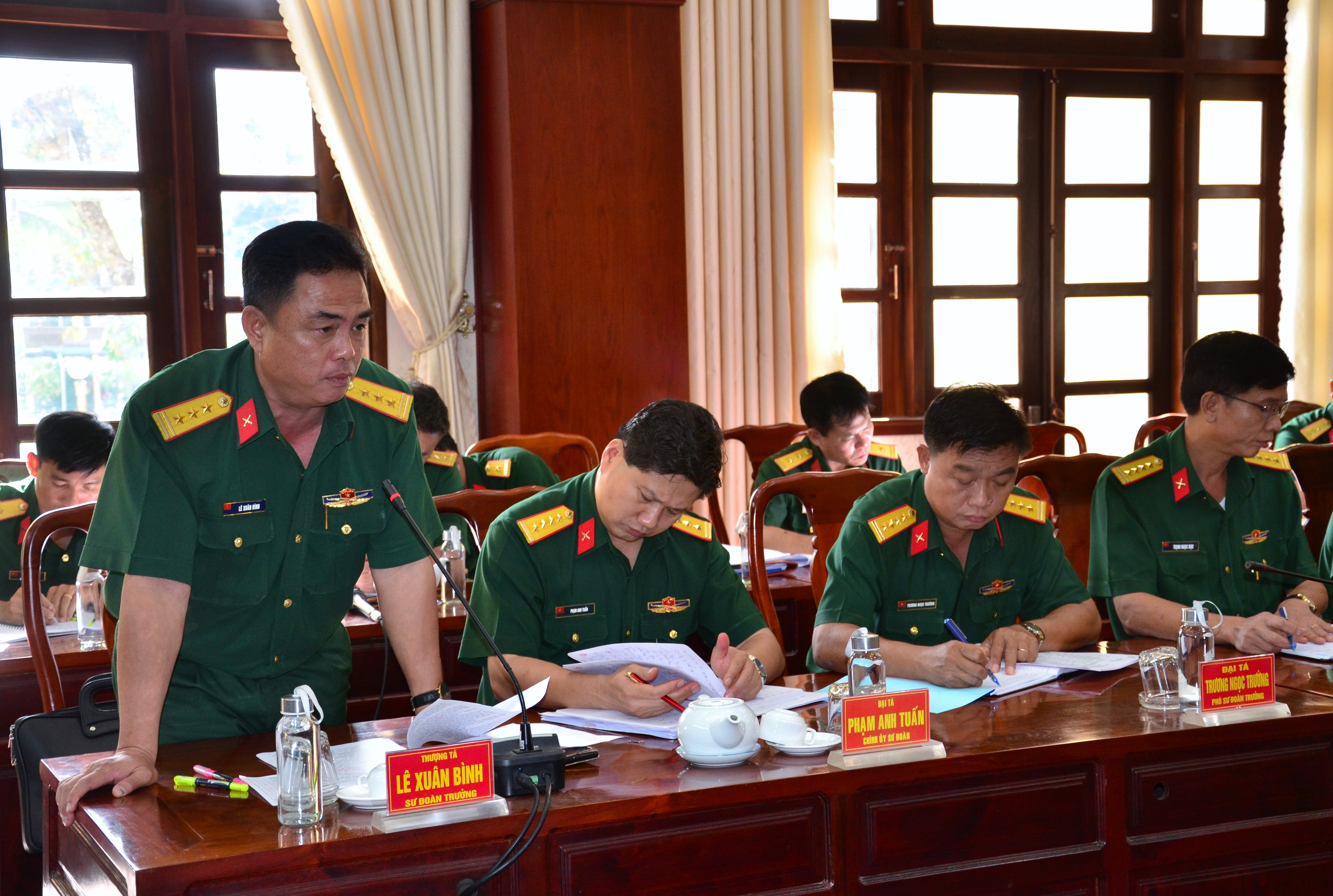 Thượng tá Lê Xuân Bình, Sư đoàn trưởng báo cáo tại buổi làm việc.