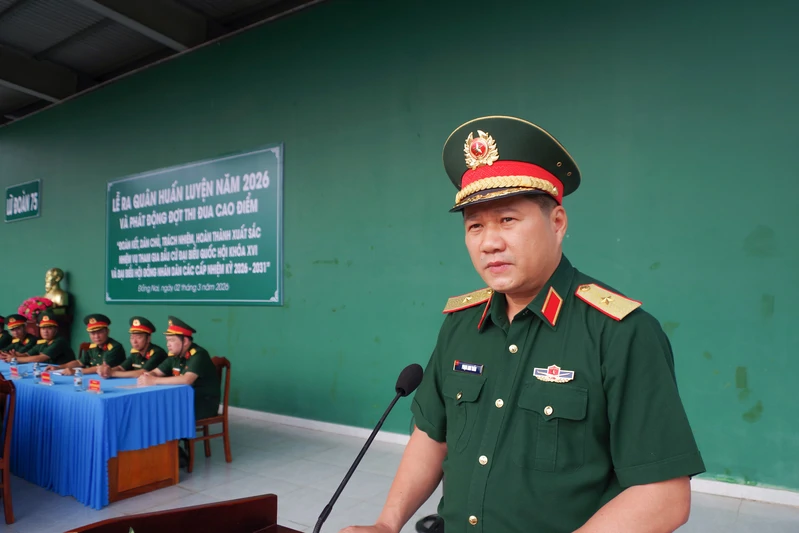 Đại tá Nguyễn Công Minh, Bí thư Đảng ủy Lữ đoàn, Chính ủy Lữ đoàn 75 phát động đợt thi đua cao điểm với chủ đề: “Đoàn kết, dân chủ, trách nhiệm, hoàn thành xuất sắc nhiệm vụ tham gia bầu cử đại biểu Quốc hội khóa XVI và đại biểu Hội đồng nhân dân các cấp nhiệm kỳ 2026 - 2031”.