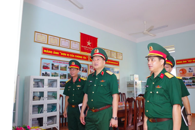 Thiếu tướng Phạm Anh Tuấn, Ủy viên Ban Thường vụ Đảng ủy Quân khu, Chủ nhiệm Chính trị Quân khu tham quan phòng Hồ Chí Minh tại Lữ đoàn 75.