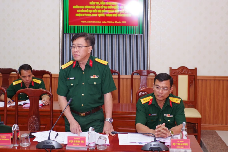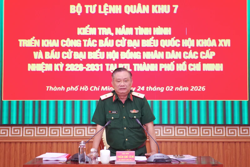 (QK7 Online) - Sáng ngày 24/2, Đoàn công tác Bộ Tư lệnh Quân khu 7 do Thiếu tướng Trần Chí Tâm, Ủy viên Ban Thường vụ Đảng ủy, Phó Chính ủy Quân khu làm trưởng đoàn đã kiểm tra, nắm tình hình triển khai công tác bầu cử Đại biểu Quốc hội (ĐBQH) khóa XVI và bầu cử Đại biểu Hội đồng Nhân dân (ĐB HĐND) các cấp nhiệm kỳ 2026-2031 tại Bộ Tư lệnh TP. Hồ Chí Minh. Tham gia đoàn có Đại tá Nguyễn Ngọc Kiên, Phó Tham mưu trưởng Quân khu; Đại tá Thái Thành Đức, Phó Chủ nhiệm Chính trị Quân khu cùng thủ trưởng các phòng, ban chức năng Quân khu.