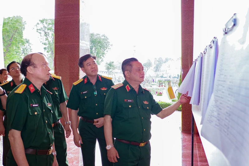 Thiếu tướng Trần Chí Tâm, Ủy viên Ban Thường vụ Đảng ủy, Phó Chính ủy Quân khu và đoàn công tác kiểm tra khu vực niêm yết danh sách cử tri.