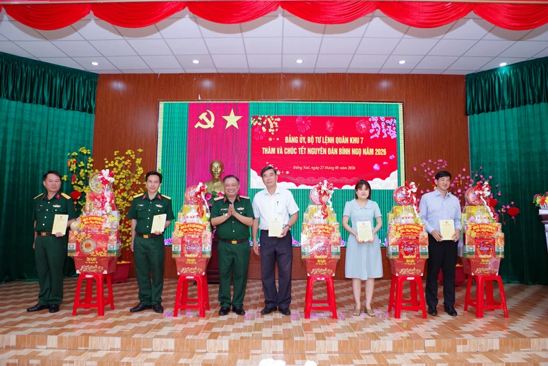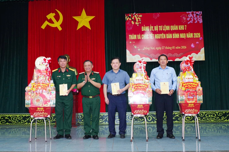 (QK7 Online) - Ngày 27/1, Thiếu tướng Trần Chí Tâm, Ủy viên Ban Thường vụ Đảng ủy Quân khu, Phó Chính ủy Quân khu 7 cùng đoàn công tác đã đến thăm, chúc Tết các đơn vị đứng chân trên địa bàn và doanh nghiệp tại tỉnh Đồng Nai. Tham gia đoàn có thủ trưởng Cục Chính trị, Văn phòng Quân khu và các phòng, ban chức năng của Quân khu.