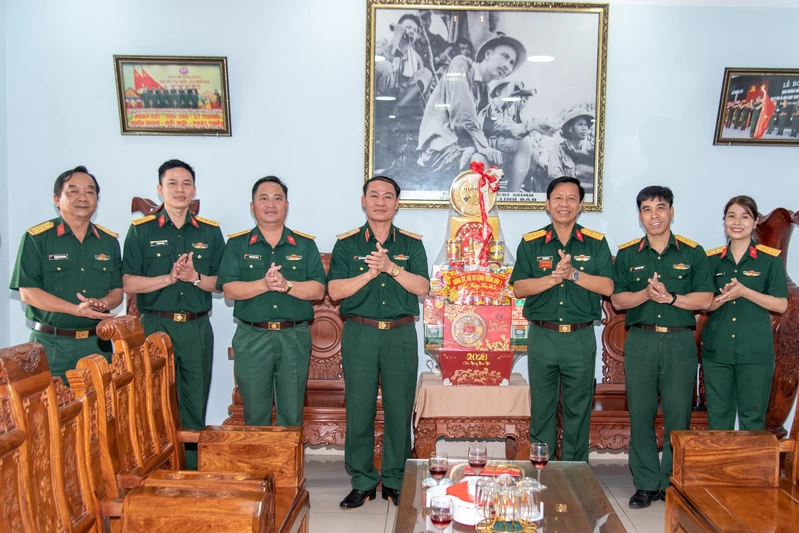 Thiếu tướng Trần Ngọc Minh thăm, chúc Tết, tặng quà của Bộ Tư lệnh Quân khu cho Ban Chỉ huy phòng thủ khu vực 2 – Phú Lợi.