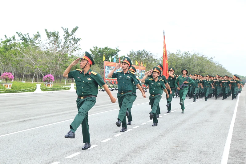 Cán bộ, chiến sĩ Sư đoàn 5 duyệt đội ngũ.