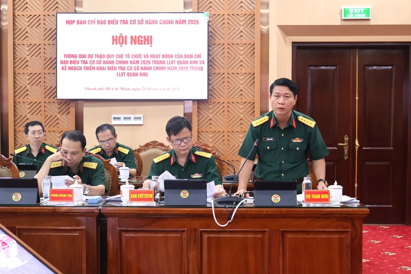 (QK7 Online) – Ngày 21/4, Ban Chỉ đạo Điều tra cơ sở hành chính năm 2026 trong LLVT Quân khu thông qua dự thảo quy chế tổ chức và hoạt động; kế hoạch triển khai điều tra cơ sở hành chính năm 2026 trong LLVT Quân khu. Thiếu thướng Trần Ngọc Minh, Phó Tư lệnh Quân khu chủ trì hội nghị.