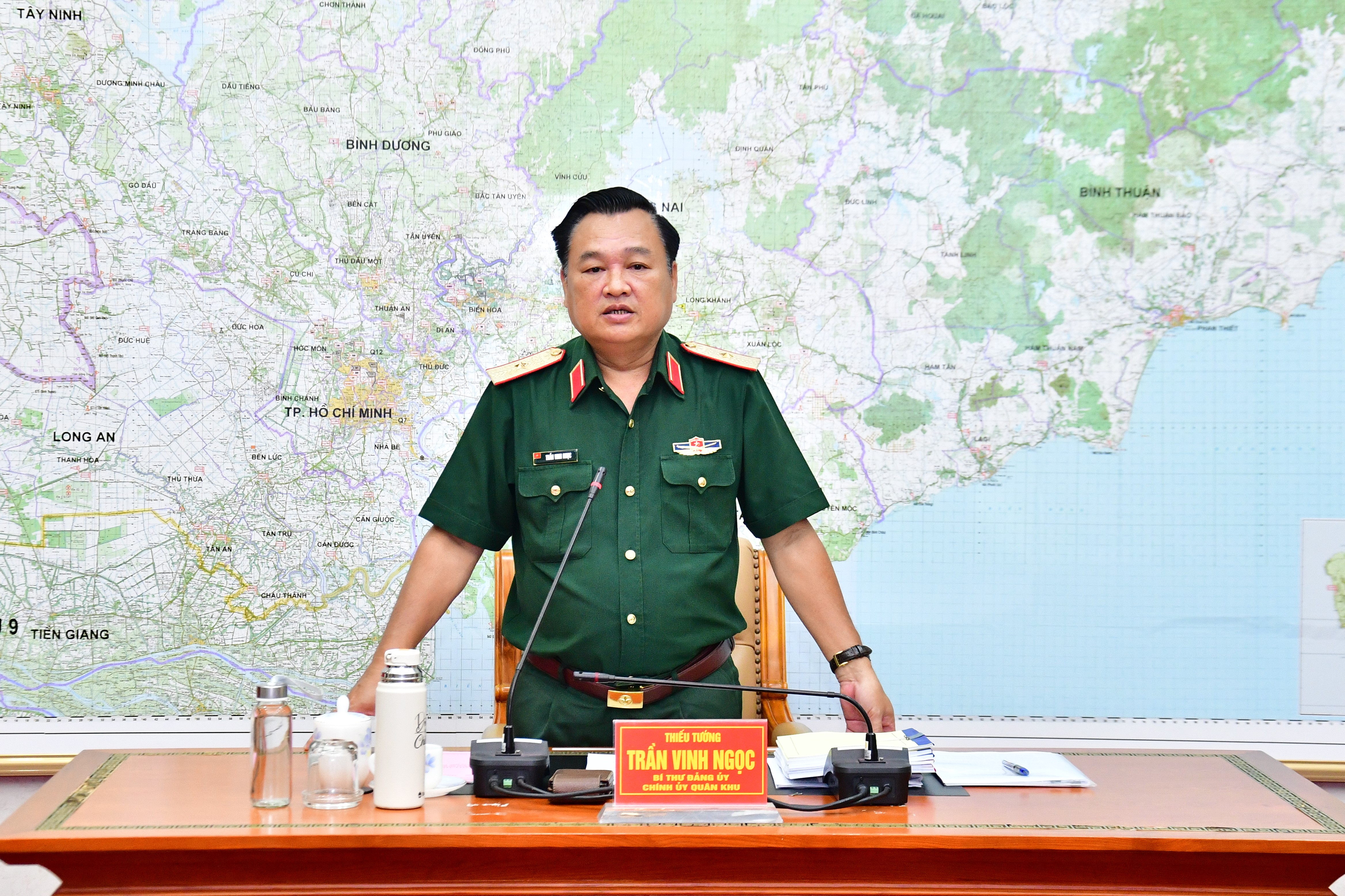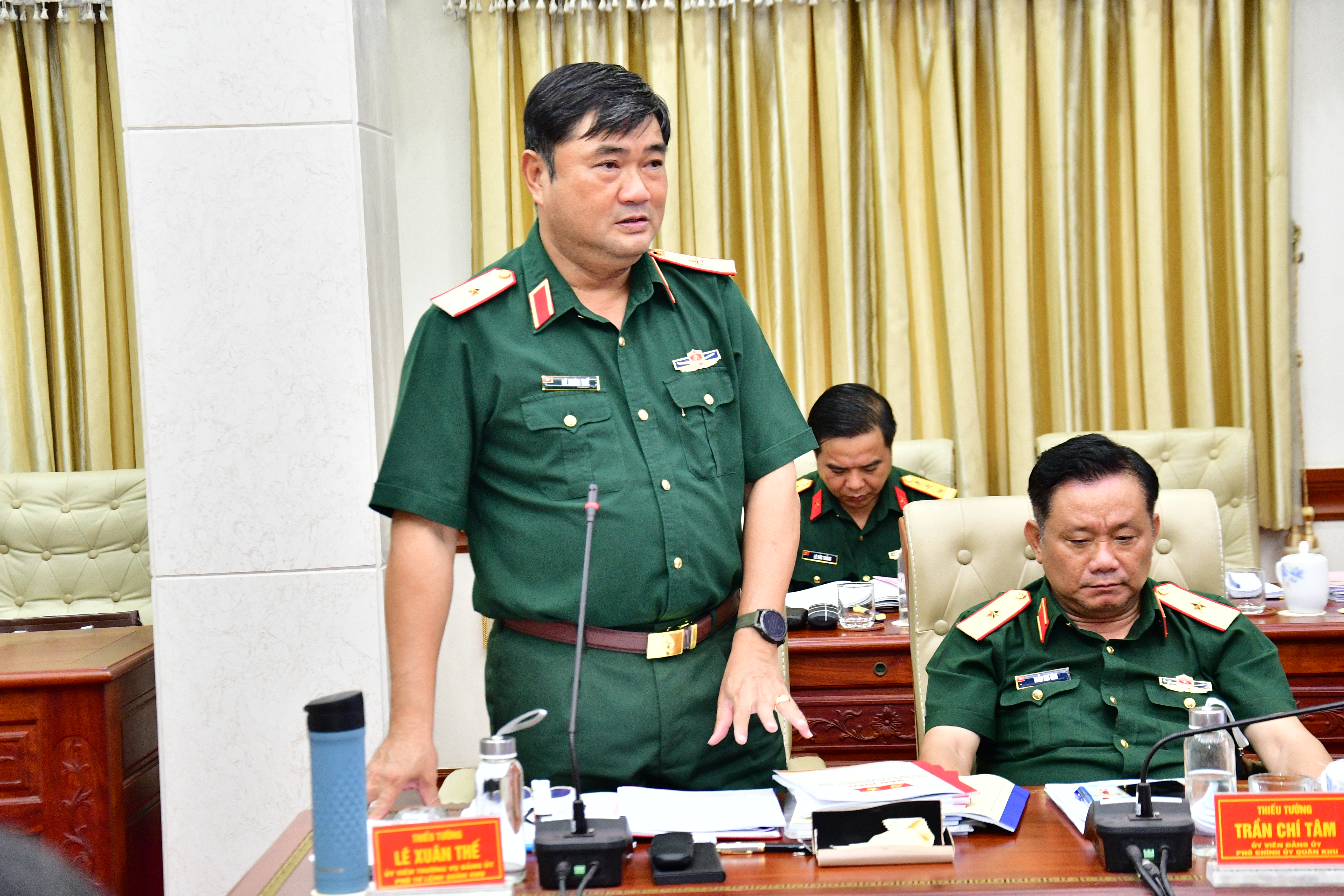 Thiếu tướng Trần Vinh Ngọc, Bí thư Đảng ủy, Chính ủy Quân khu chủ trì hội nghị.