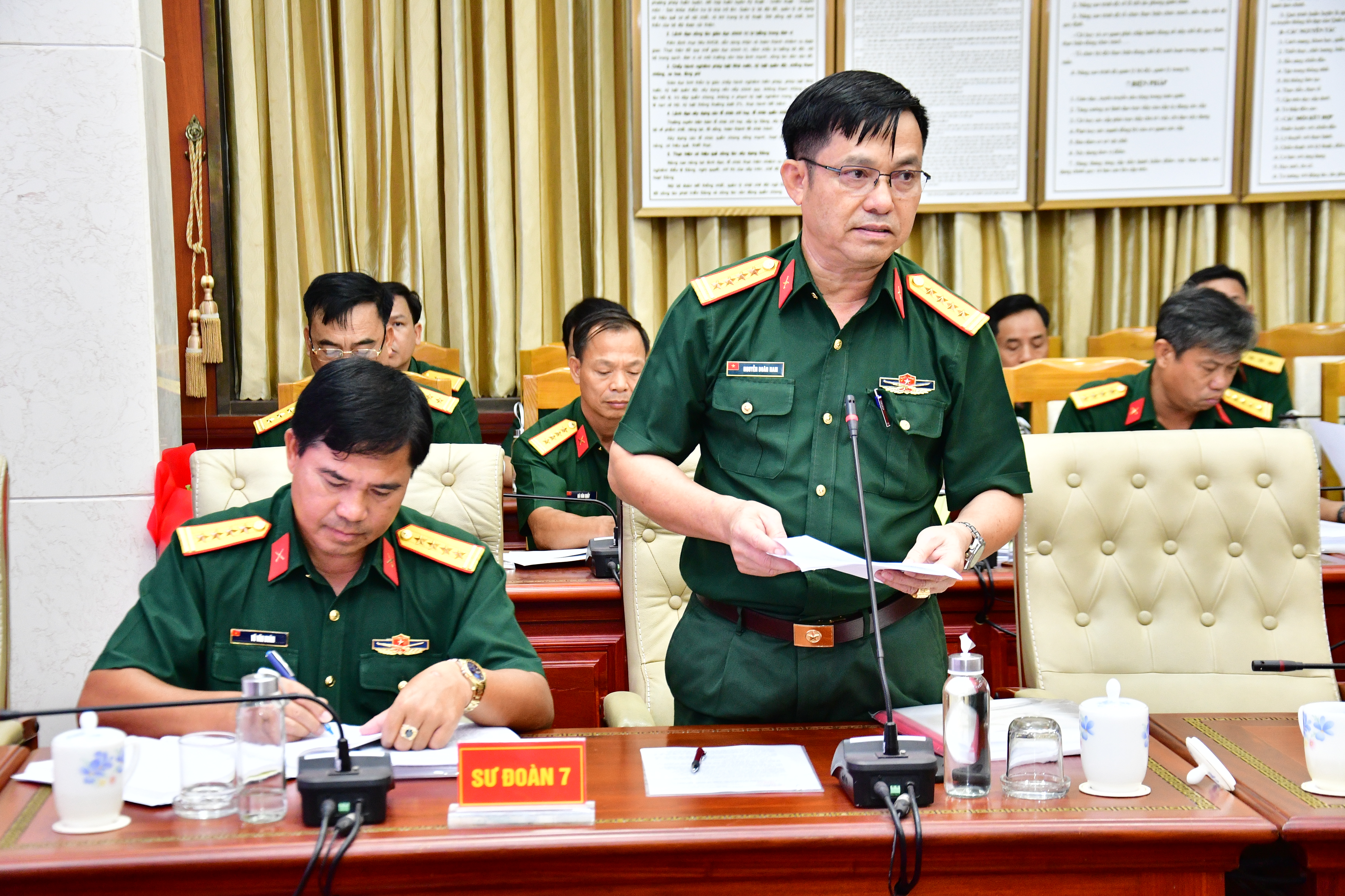 (QK7 Online) - Sáng ngày 20/6, Ban Thường vụ Đảng ủy, Bộ Tư lệnh Quân khu 7 tổ chức hội nghị thông qua văn kiện Đại hội Đảng bộ Sư đoàn 7 và Sư đoàn 309 nhiệm kỳ 2025 - 2030. Thiếu tướng Trần Vinh Ngọc, Bí thư Đảng ủy, Chính ủy Quân khu chủ trì hội nghị.