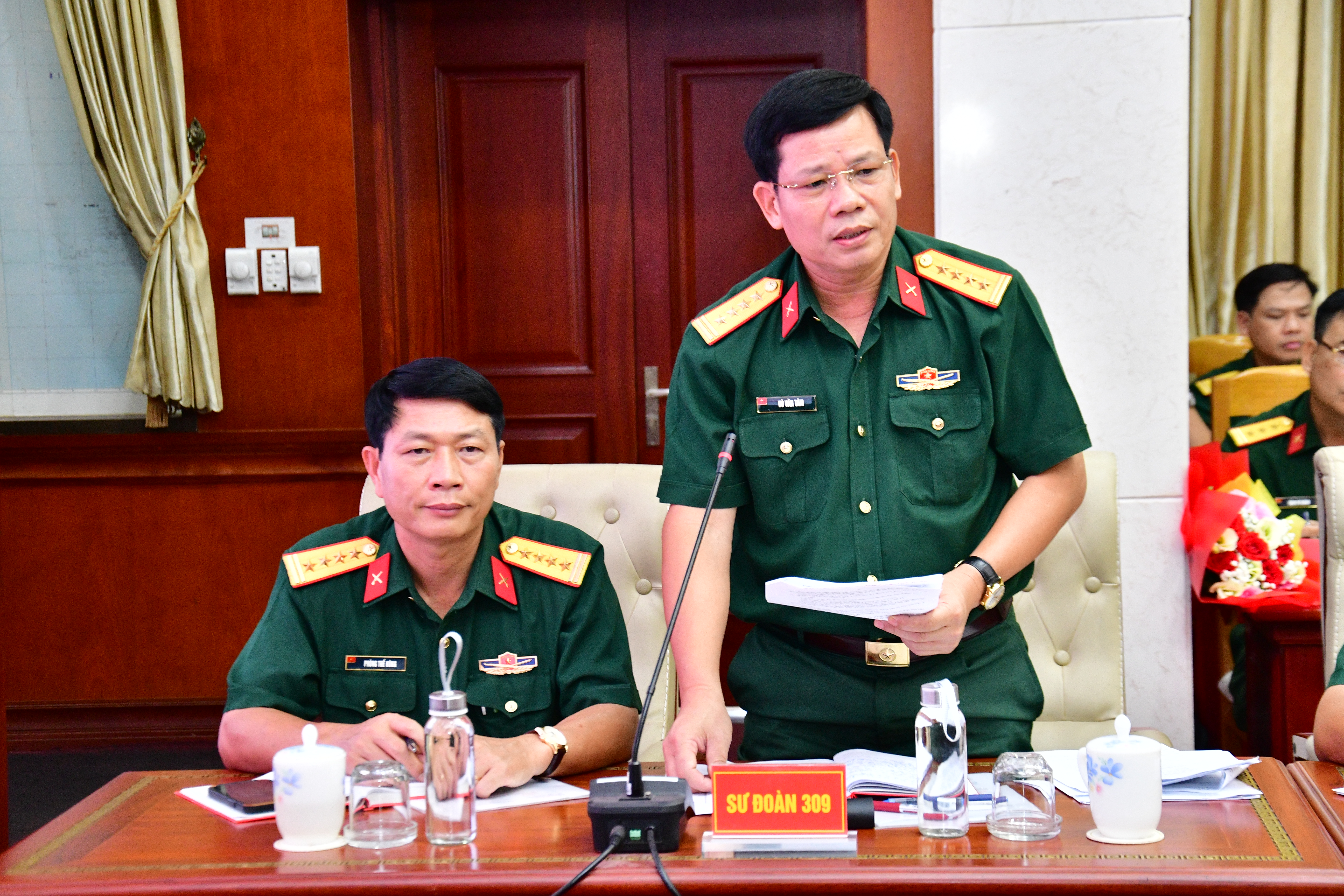 Thiếu tướng Lê Xuân Thế, Ủy viên Ban thường vụ Đảng ủy Quân khu, Phó Tư lệnh Quân khu đề nghị Đảng ủy Sư đoàn 7 và Đảng ủy Sư đoàn 309 nghiên cứu chỉnh sửa thể thức văn bản và bố cục trình bày nội dung của các văn kiện bảo đảm thống nhất, đúng quy định.