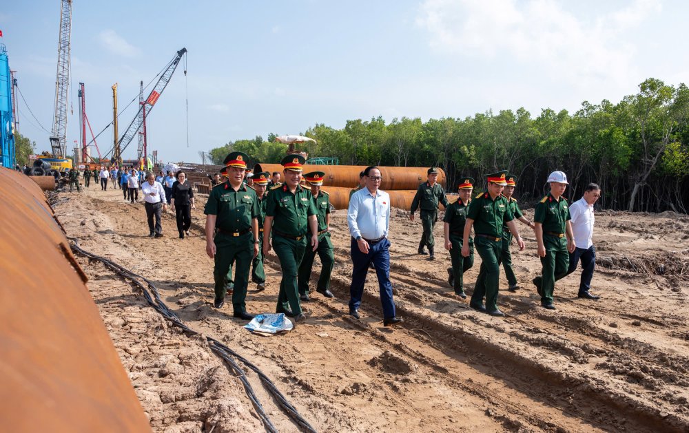 Phó Chủ tịch Quốc hội Trần Quang Phương đã đến kiểm tra công trường dự án cao tốc Cà Mau - Đất Mũi và cầu vượt biển ra đảo Hòn Khoai tại xã Đất Mũi, tỉnh Cà Mau