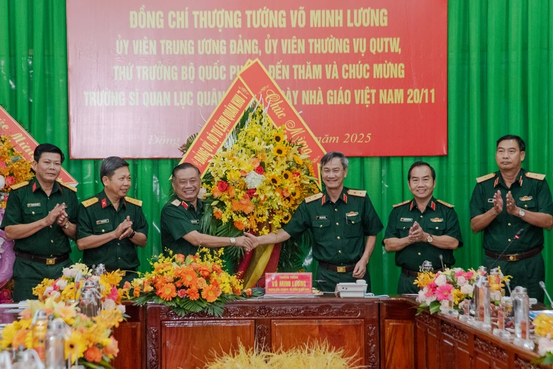 (QK7 Online) - Nhân kỷ niệm 43 năm Ngày Nhà giáo Việt Nam (20/11/1982 -20/11/2025), Thượng tướng Võ Minh Lương, Ủy viên Trung ương Đảng, Ủy viên Thường vụ Quân ủy Trung ương, Thứ trưởng Bộ Quốc phòng đến thăm, chúc mừng Ngày Nhà giáo Việt Nam tại Trường Sĩ quan Lục quân 2. Tham gia cùng đoàn công tác có Thiếu tướng Trần Chí Tâm, Phó Chính ủy Quân khu 7.
