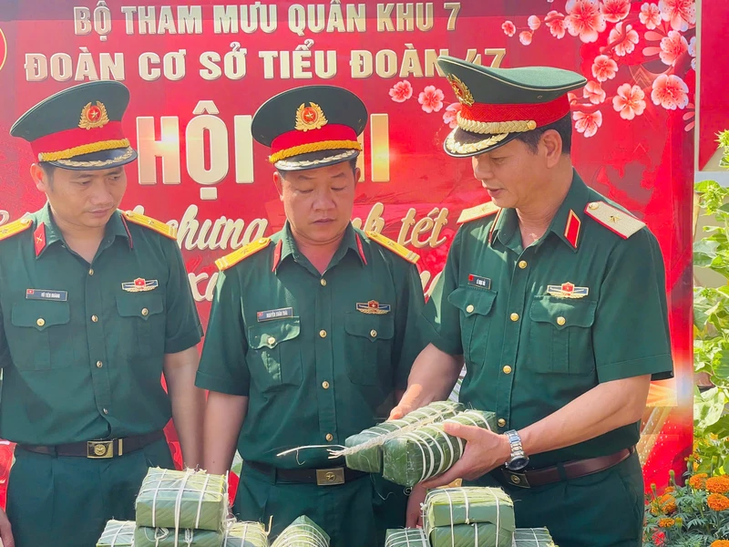 Thiếu tướng Lê Ngọc Hải, Phó Tham mưu trưởng Quân khu tham quan bánh chưng, bánh tét do cán bộ, chiến sĩ tự tay gói, nấu.