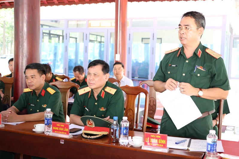 Thiếu tướng Lê Xuân Bình, Ủy viên Ban Thường vụ Đảng uỷ, Phó Tư lệnh, Tham mưu trưởng Quân khu phát biểu tại buổi kiểm tra.