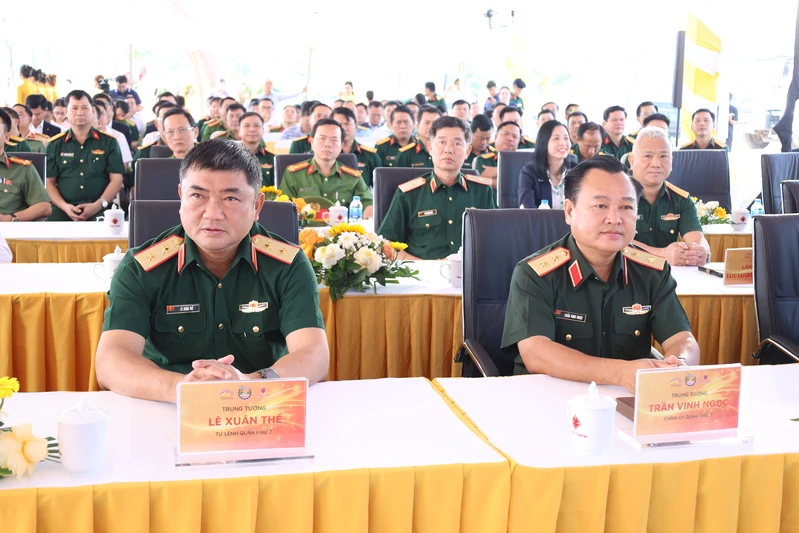 Trung tướng Lê Xuân Thế, Tư lệnh Quân khu 7; Trung tướng Trần Vinh Ngọc, Bí thư Đảng ủy, Chính ủy Quân khu dự lễ khởi công.