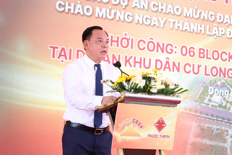 Đồng chí Võ Tấn Đức, Phó Bí thư Tỉnh ủy Đồng Nai phát biểu tại lễ khởi công Dự án Chung cư nhà ở xã hội tại phường Long Hưng.