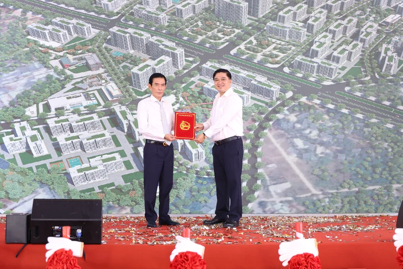 Đồng chí Hồ Văn Hà, Tỉnh ủy viên, Phó Chủ tịch UBND tỉnh Đồng Nai trao giấy chứng nhận xây dựng nhà ở xã hội cho chủ đầu tư DonaCoop.