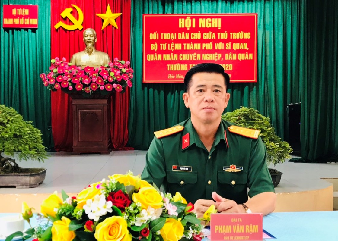 Đại tá Phạm Văn Rậm, Phó Tư lệnh Bộ Tư lệnh TP.HCM chủ trì đối thoại với cán bộ, chiến sĩ LLVT huyện Hóc Môn.
