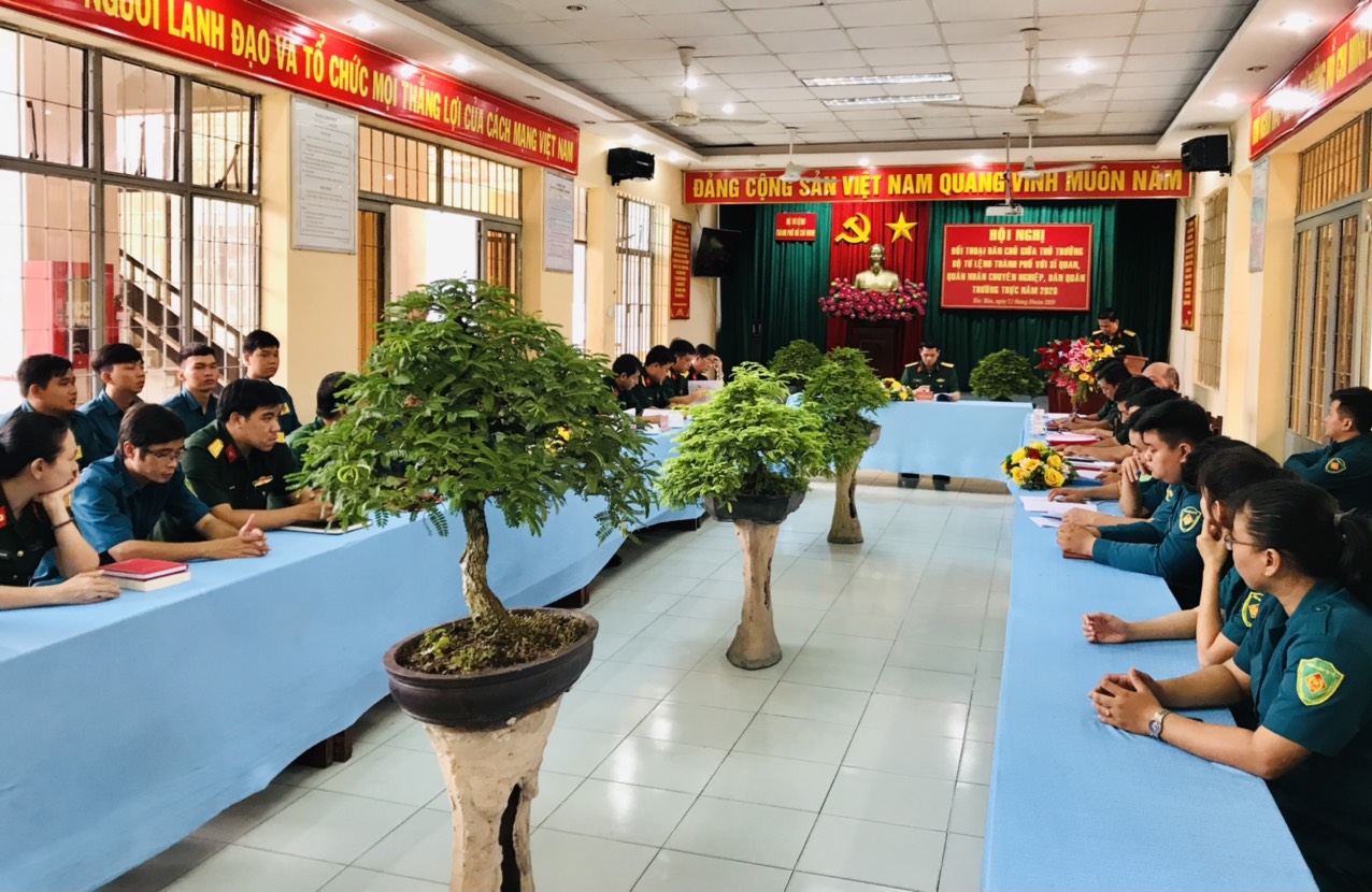 (QK7 Online) - Ngày 21/10, tại Ban CHQS huyện Hóc Môn, Bộ Tư lệnh TP.HCM tổ chức đối thoại dân chủ giữa Thủ trưởng Bộ Tư lệnh Thành phố với sĩ quan, quân nhân chuyên nghiệp, dân quân thường trực Ban CHQS huyện. Đại tá Phạm Văn Rậm, Phó Tư lệnh Bộ Tư lệnh Thành phố chủ trì buổi đối thoại.