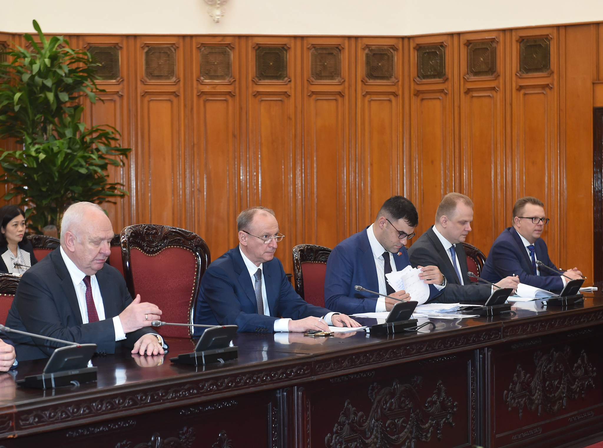 Thủ tướng đề nghị hai bên nỗ lực tháo gỡ những vướng mắc để sớm triển khai các dự án còn chậm. Việt Nam đang xem xét một số dự án mà các tập đoàn, doanh nghiệp Nga mong muốn đầu tư vào Việt Nam. Thủ tướng đề nghị hai bên quan tâm tận dụng lợi thế của FTA với Liên minh Kinh tế Á-Âu để phát triển kinh tế, thương mại và đầu tư. Việt Nam luôn ưu tiên các tập đoàn, doanh nghiệp Nga vào Việt Nam đầu tư, làm ăn.