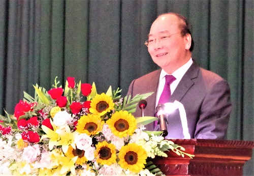 Thủ tướng Chính phủ Nguyễn Xuân Phúc nói chuyện với cán bộ, giảng viên, học viên Trường Đại học Nguyễn Huệ.