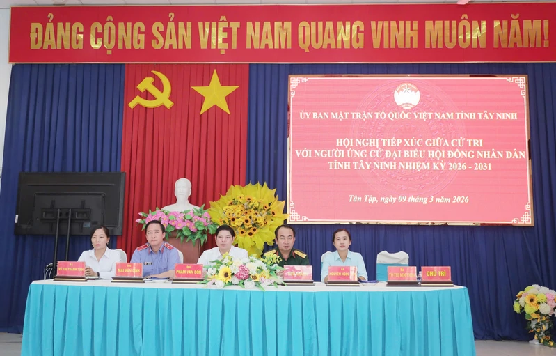 (QK7 Online) - Ngày 9/3, tại xã Tân Tập, tỉnh Tây Ninh, Thượng tá Ngô Khánh, Phó Chính ủy Bộ Chỉ huy Quân sự tỉnh Tây Ninh cùng các ứng cử viên đại biểu Hội đồng nhân dân (HĐND) tỉnh nhiệm kỳ 2026 - 2031, thuộc đơn vị bầu cử số 20 đã có buổi tiếp xúc cử tri, trình bày chương trình hành động và lắng nghe trực tiếp ý kiến, tâm tư, nguyện vọng của Nhân dân địa phương.