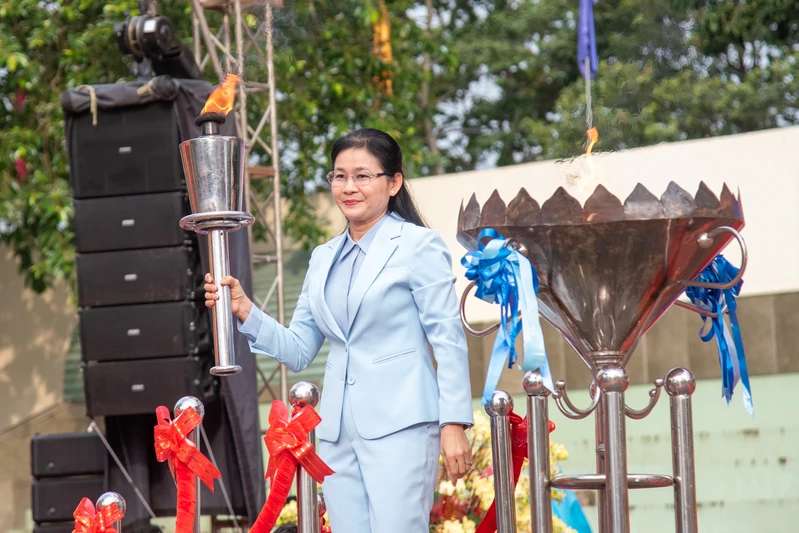 Đồng chí Tôn Ngọc Hạnh, Ủy viên Trung ương Đảng, Phó Bí thư Thường trực Tỉnh ủy, Chủ tịch HĐND tỉnh Đồng Nai thắp lửa truyền thống.